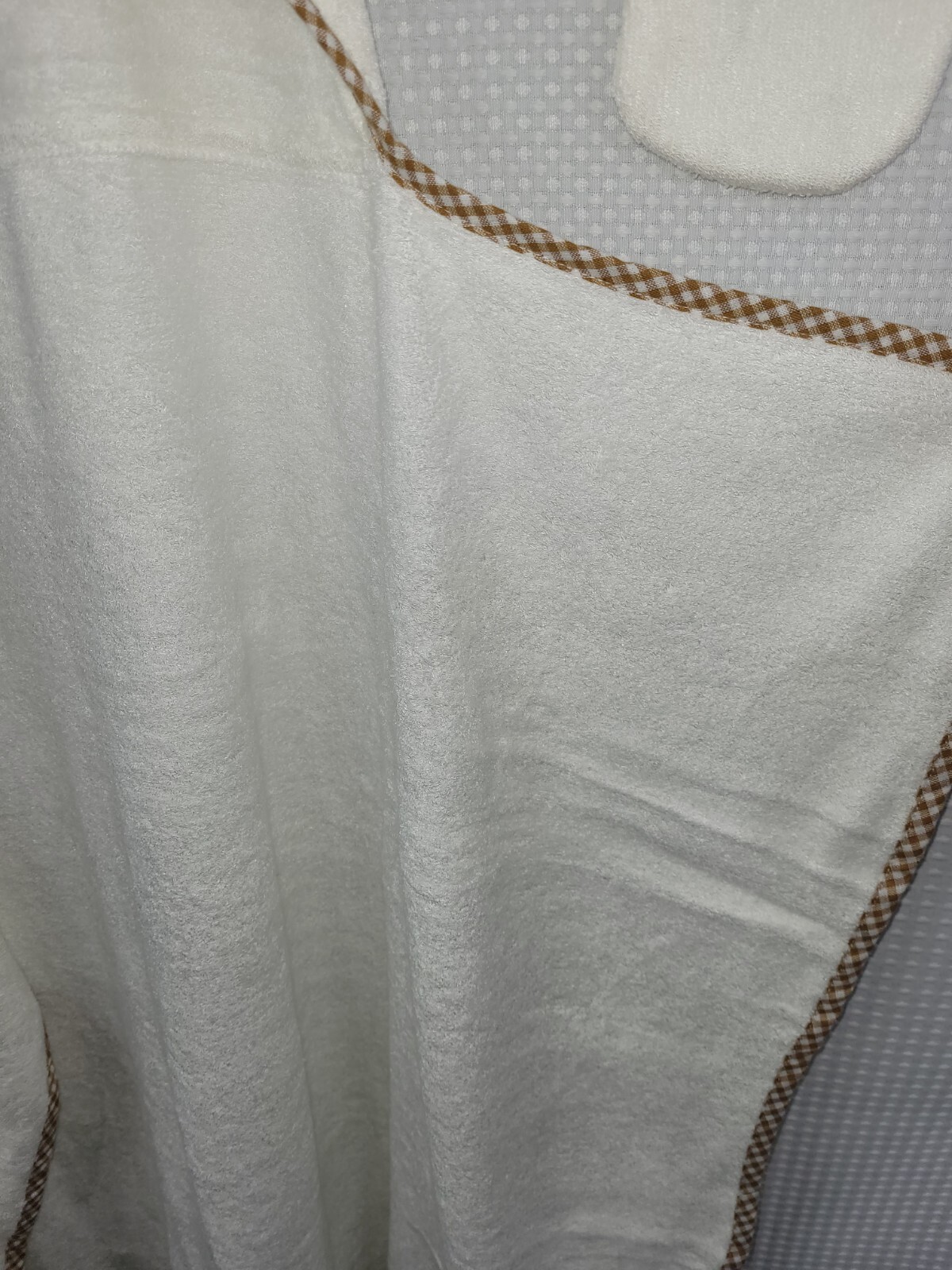 как выглядит Organic Bamboo Hooded Baby Toddler Bath Towel Cloth NEW White with Gingham Edg фото