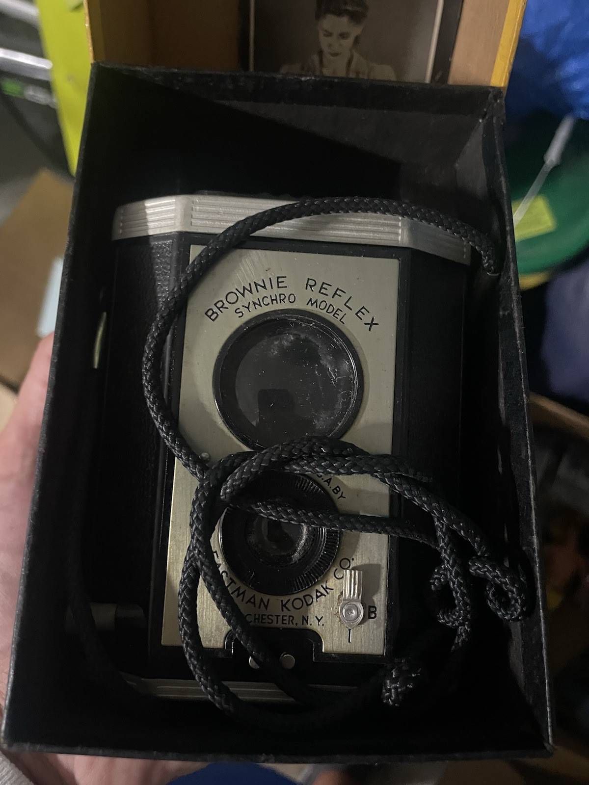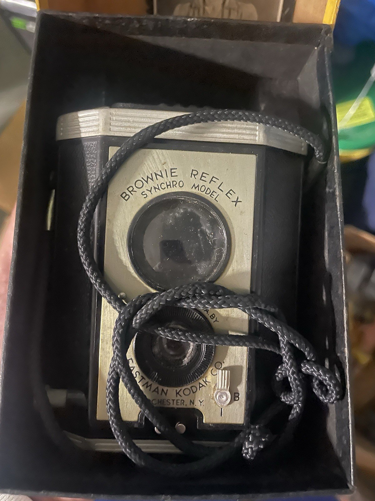 как выглядит Vintage Brownie Reflex Camera Synchro Model With Original Box And Strap Untested фото