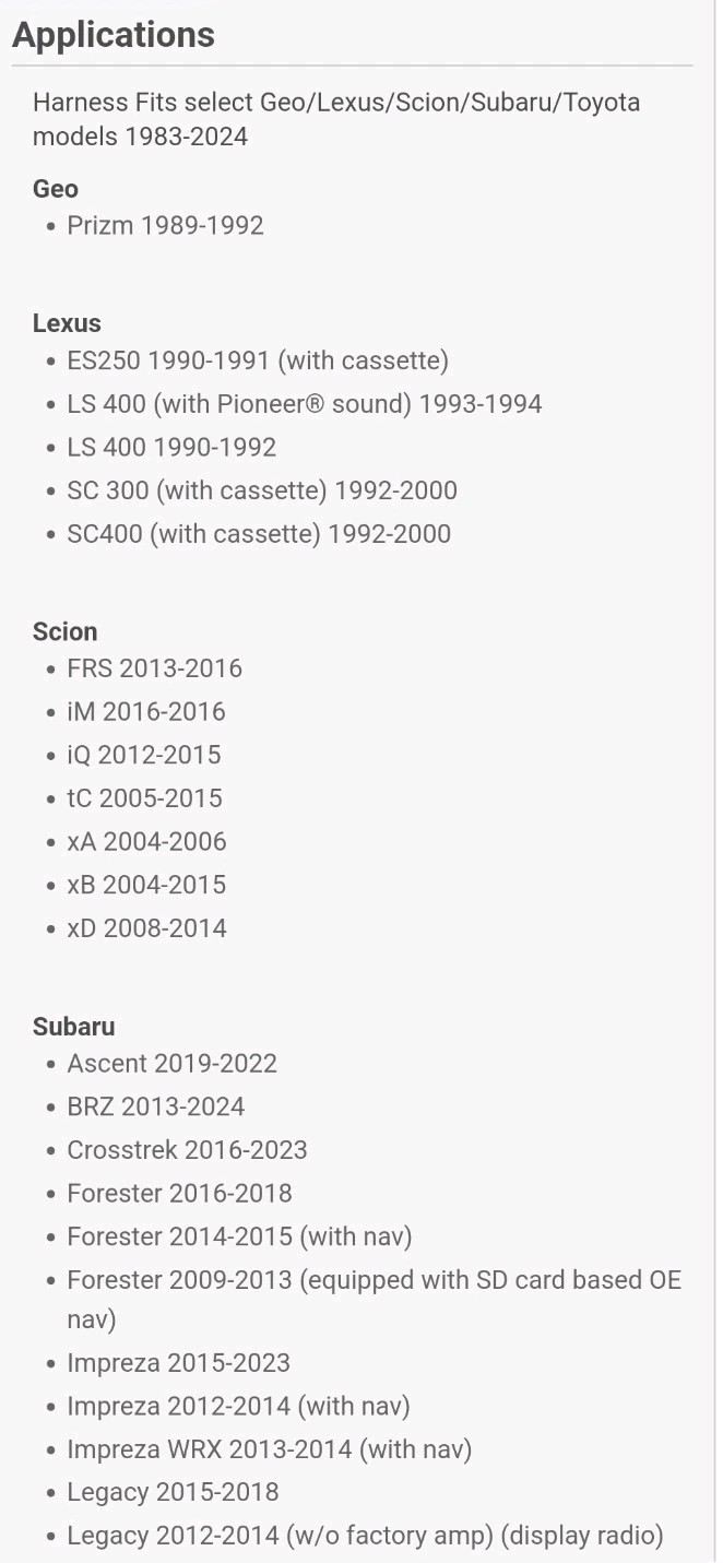 Metra 70-1761 Radio Wiring Harness 1987-Up Toyota NEW SEALED IN BAG