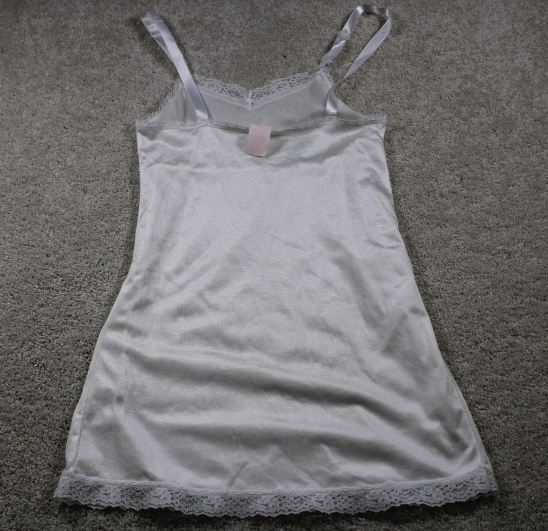 как выглядит Vintage White Lace Full Slip Womens Small Satin Nightgown Dress 90s Lingerie фото
