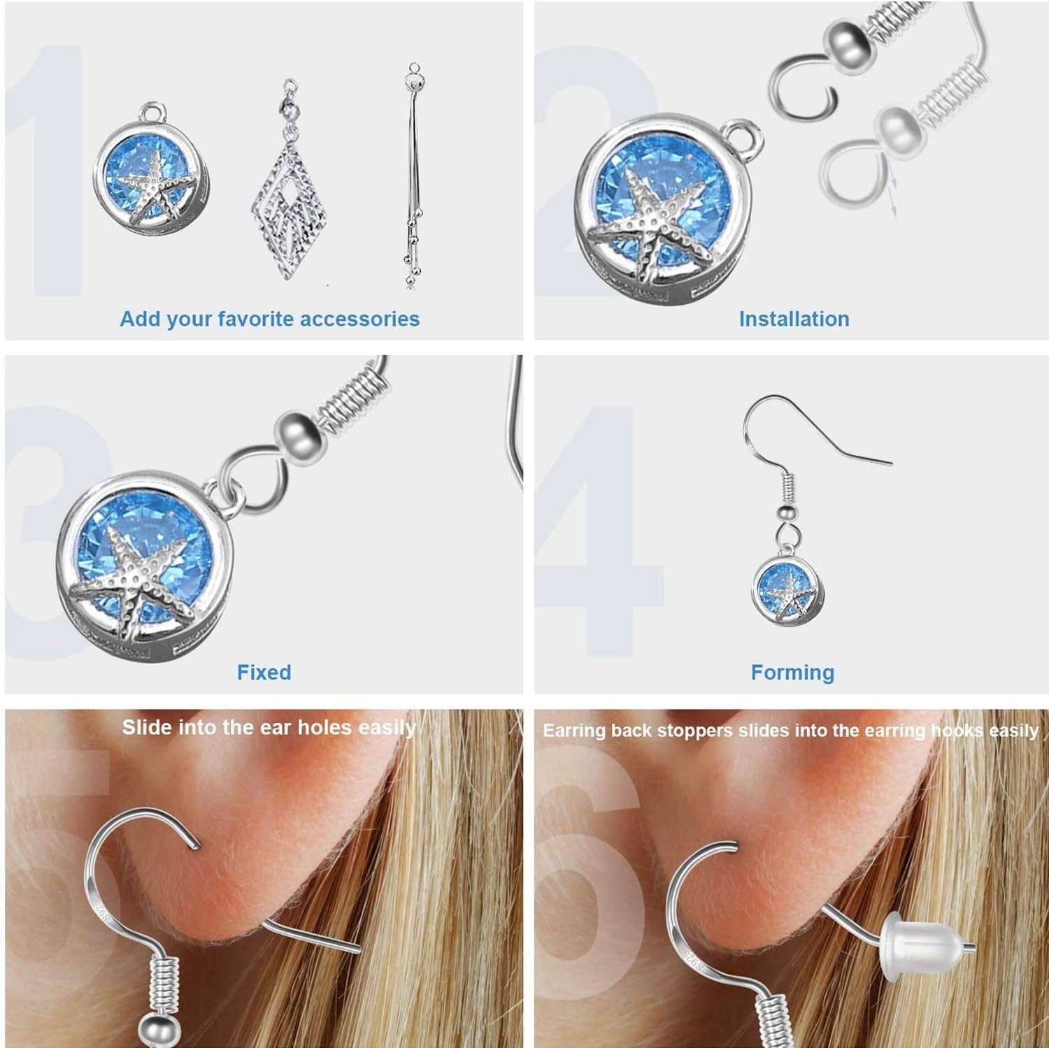 как выглядит 100 PCS / 50 Pairs 925 Sterling Silver Earring Hooks Hook Ear Wires with 100 ... фото