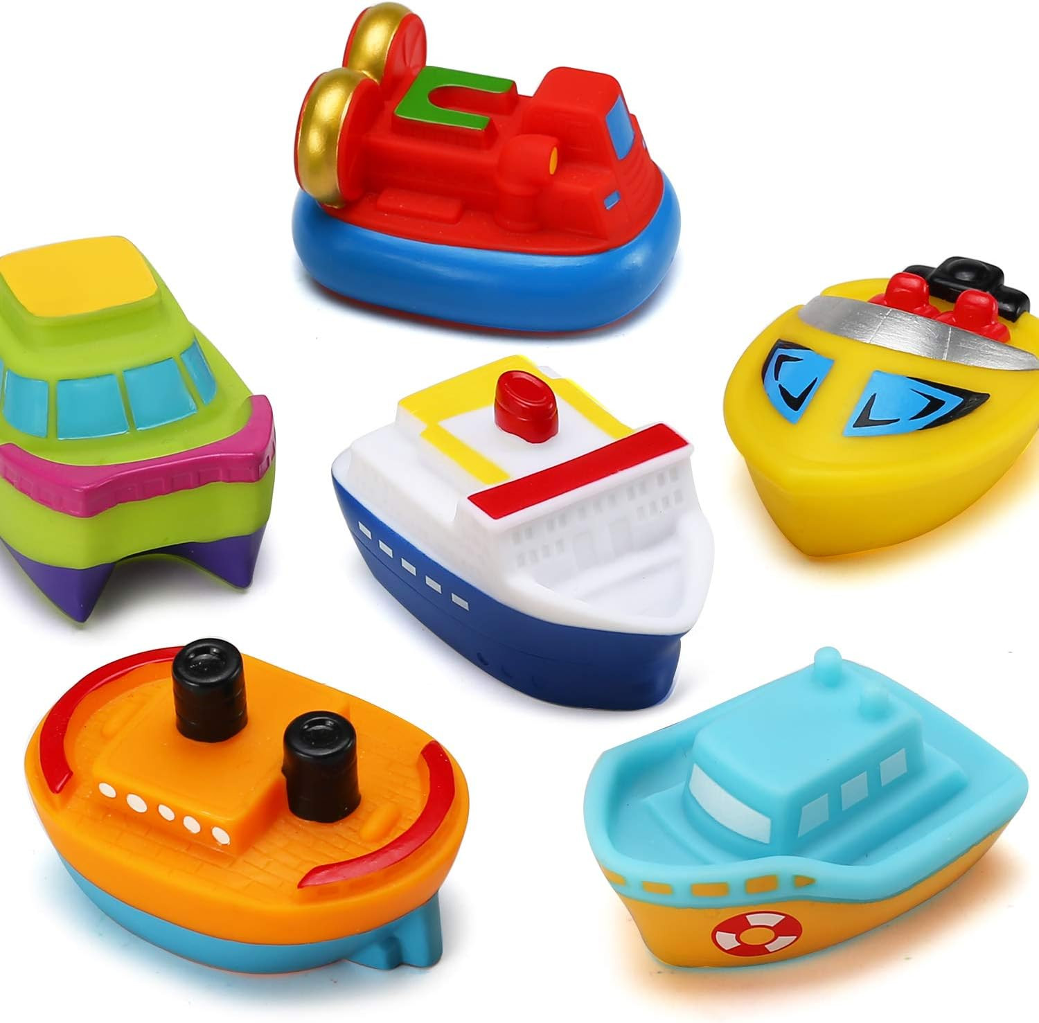 6Pc Light Up Bath Boat Toys Floating Rubber Ships w/ Color Changing Lights