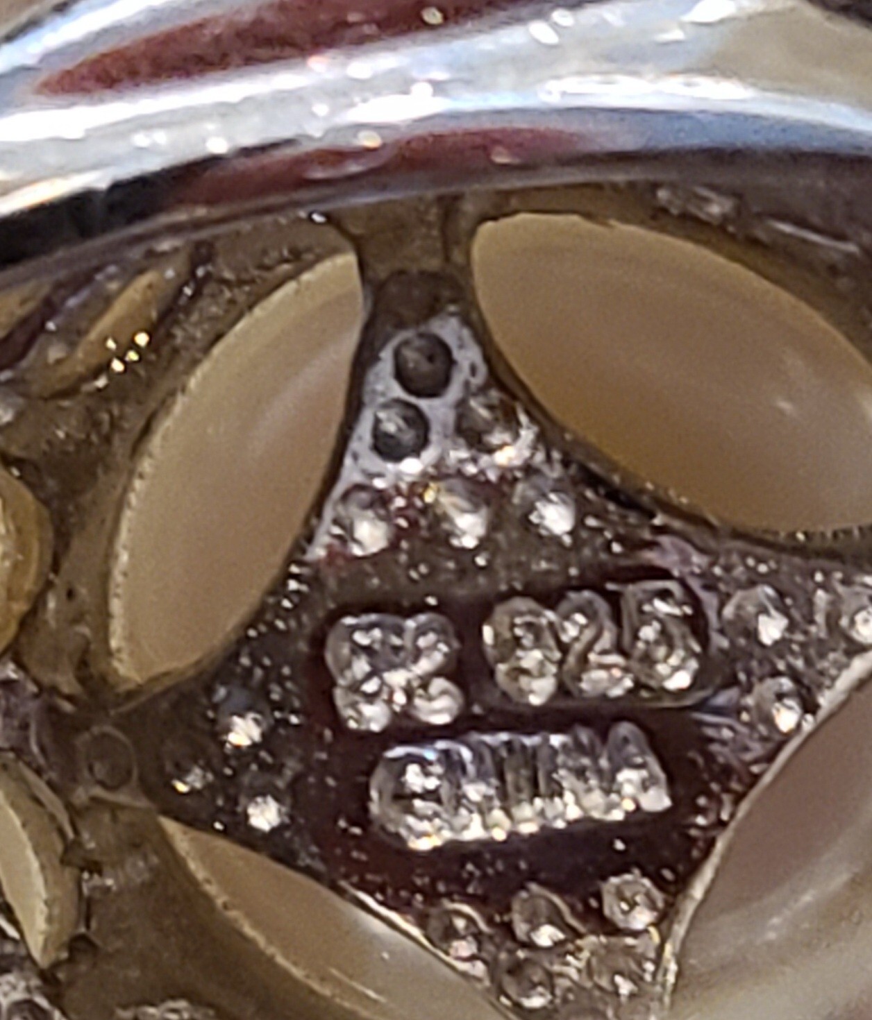 925 Sterling Cultured Freshwater White Pearls Bezel Flower Design Ring Size 6