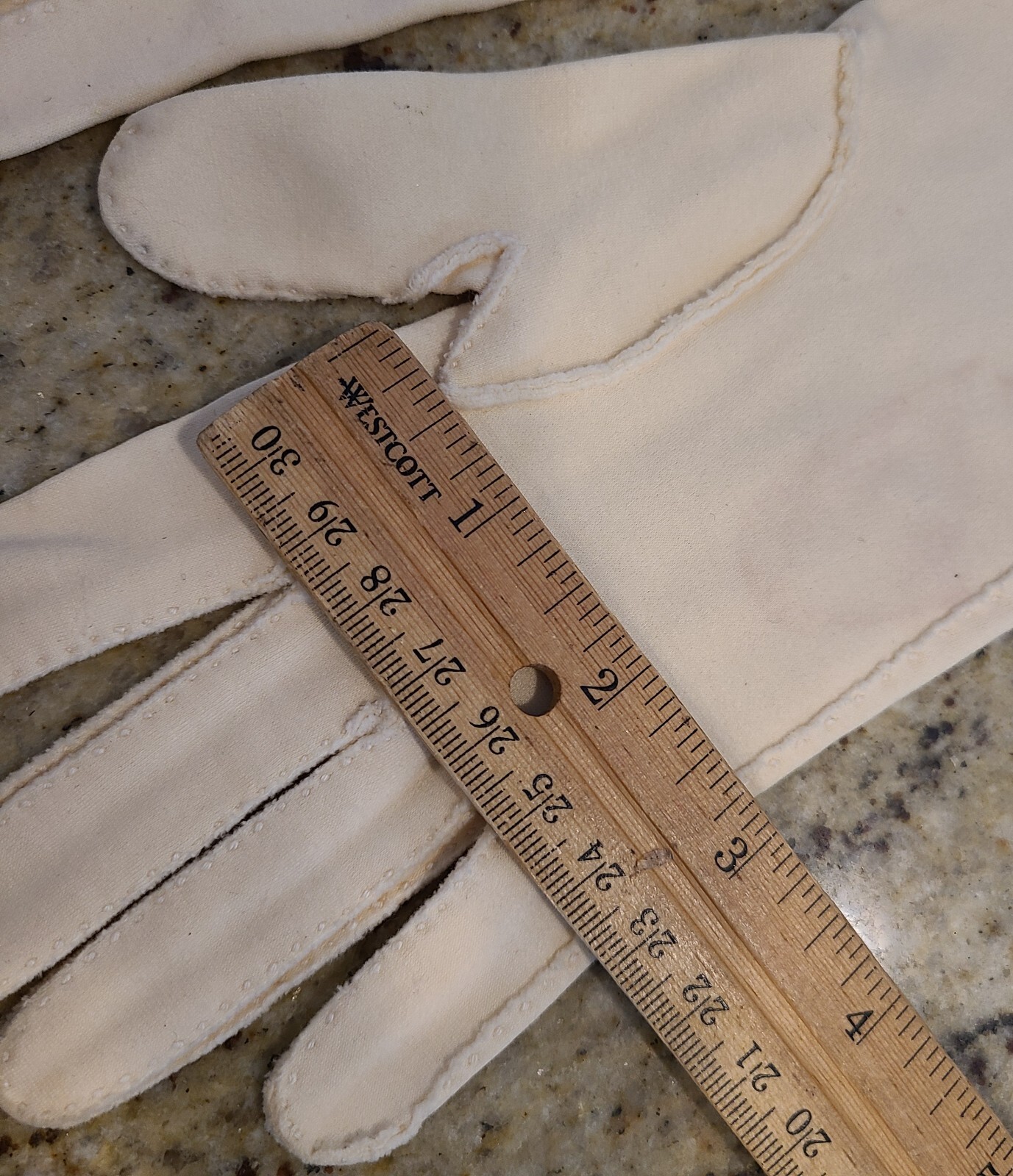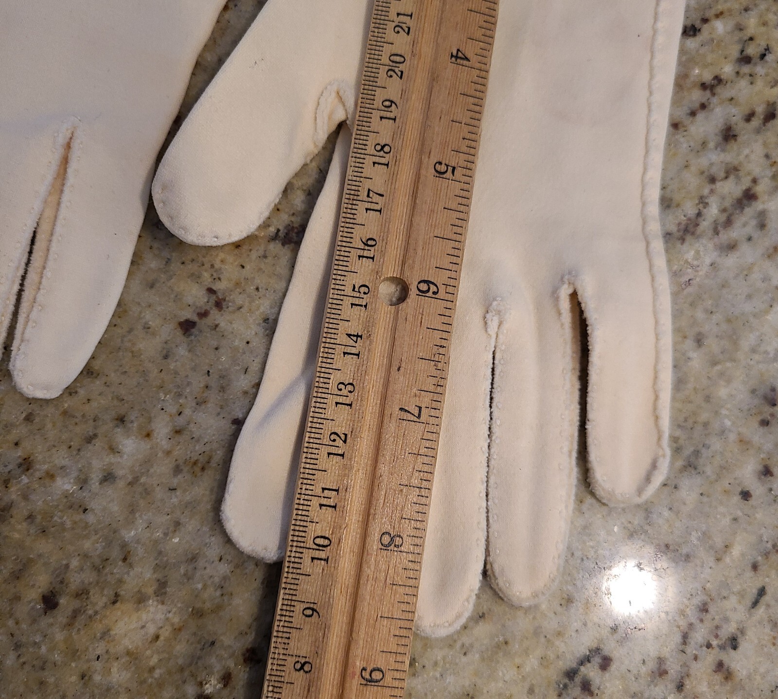 как выглядит Vintage Size XS S Beige Cotton Formal 8.5" Gloves Embroidered Flower Scallop фото