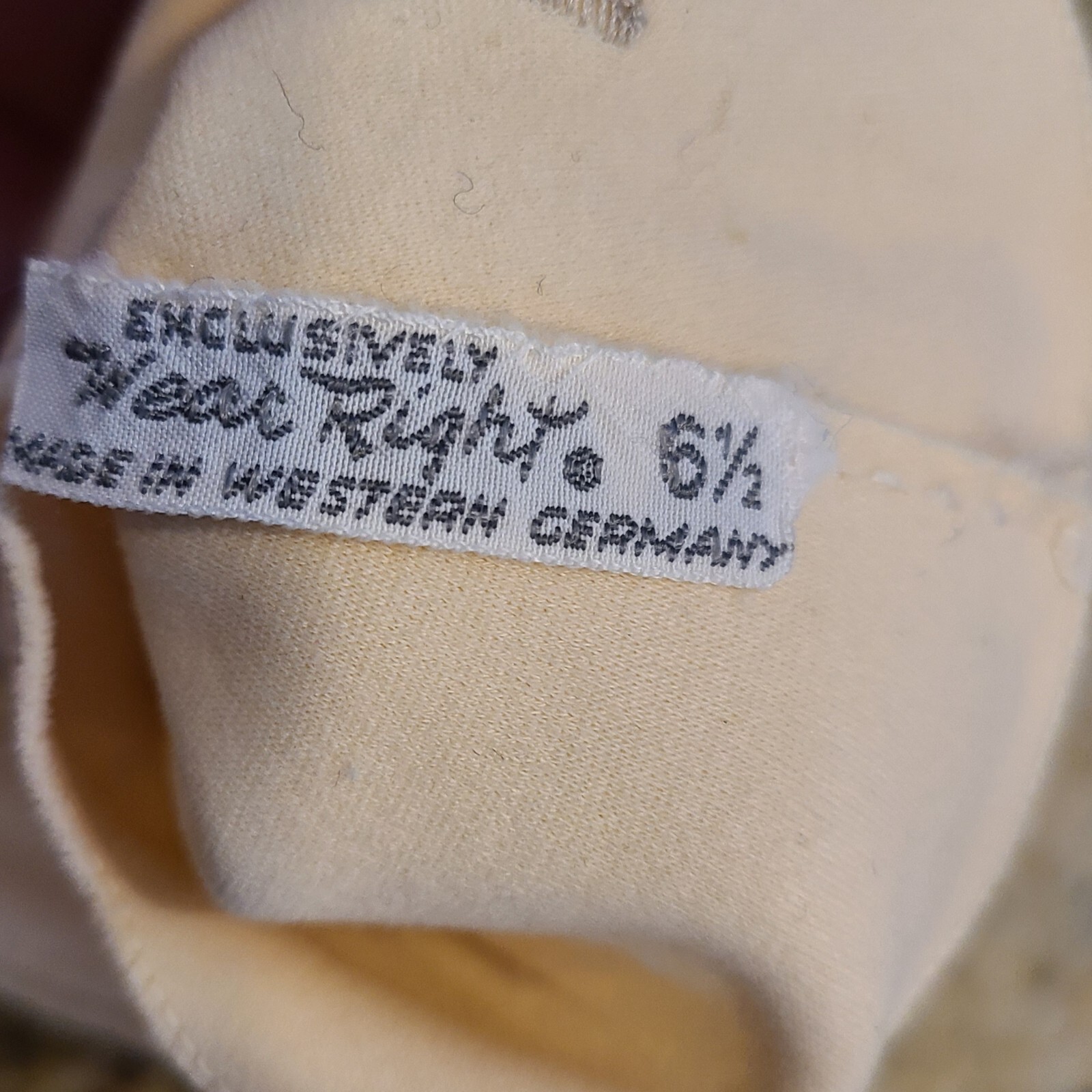 Vintage Size XS S Beige Cotton Formal 8.5 Gloves Embroidered Flower Scallop