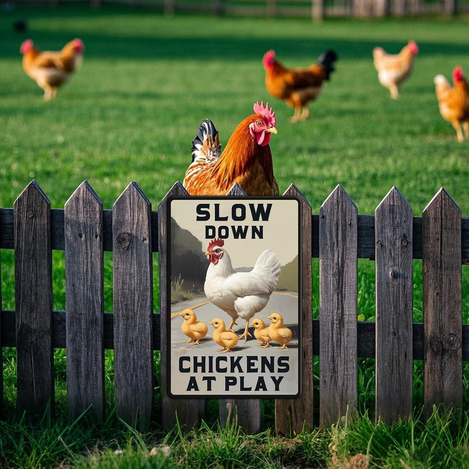 Funny Chicken Tin Metal Signs 8x12 Farmhouse Rooster Crowing Farm Fence Aluminiu