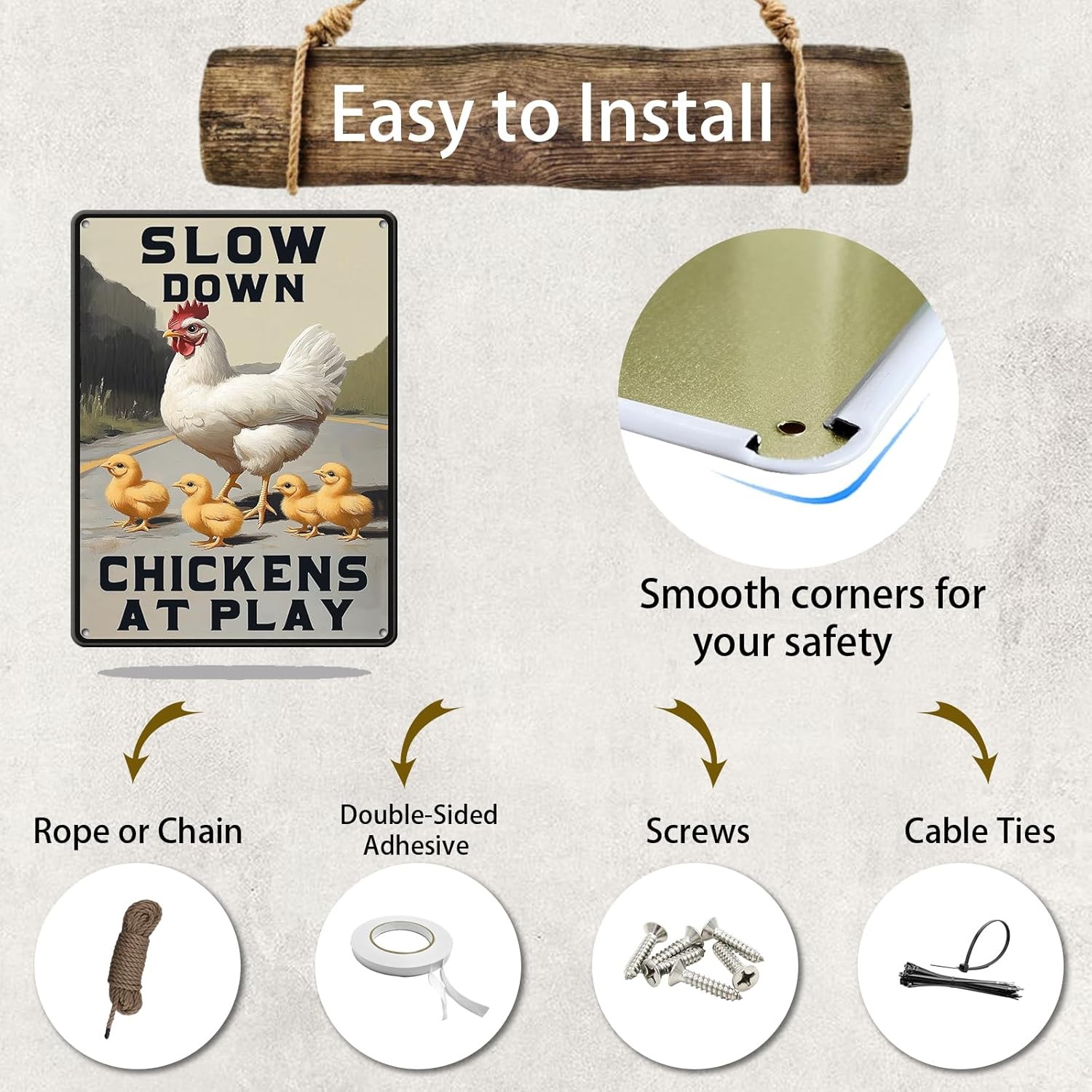 1. [Size: ] Funny Vintage Metal Chicken Sign Size:12 (W) X 8 (H) Inchs,(30x