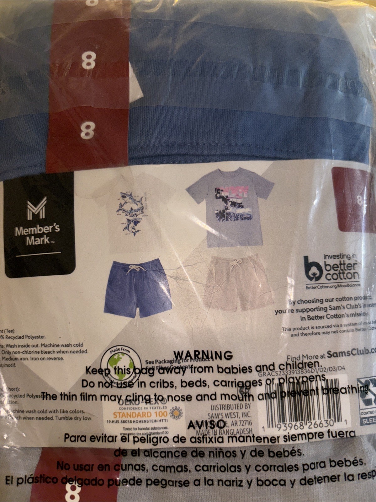 New Shark Size 8 Member's Mark Boy's 4-Piece Mix N Match Everyday Playwear Set