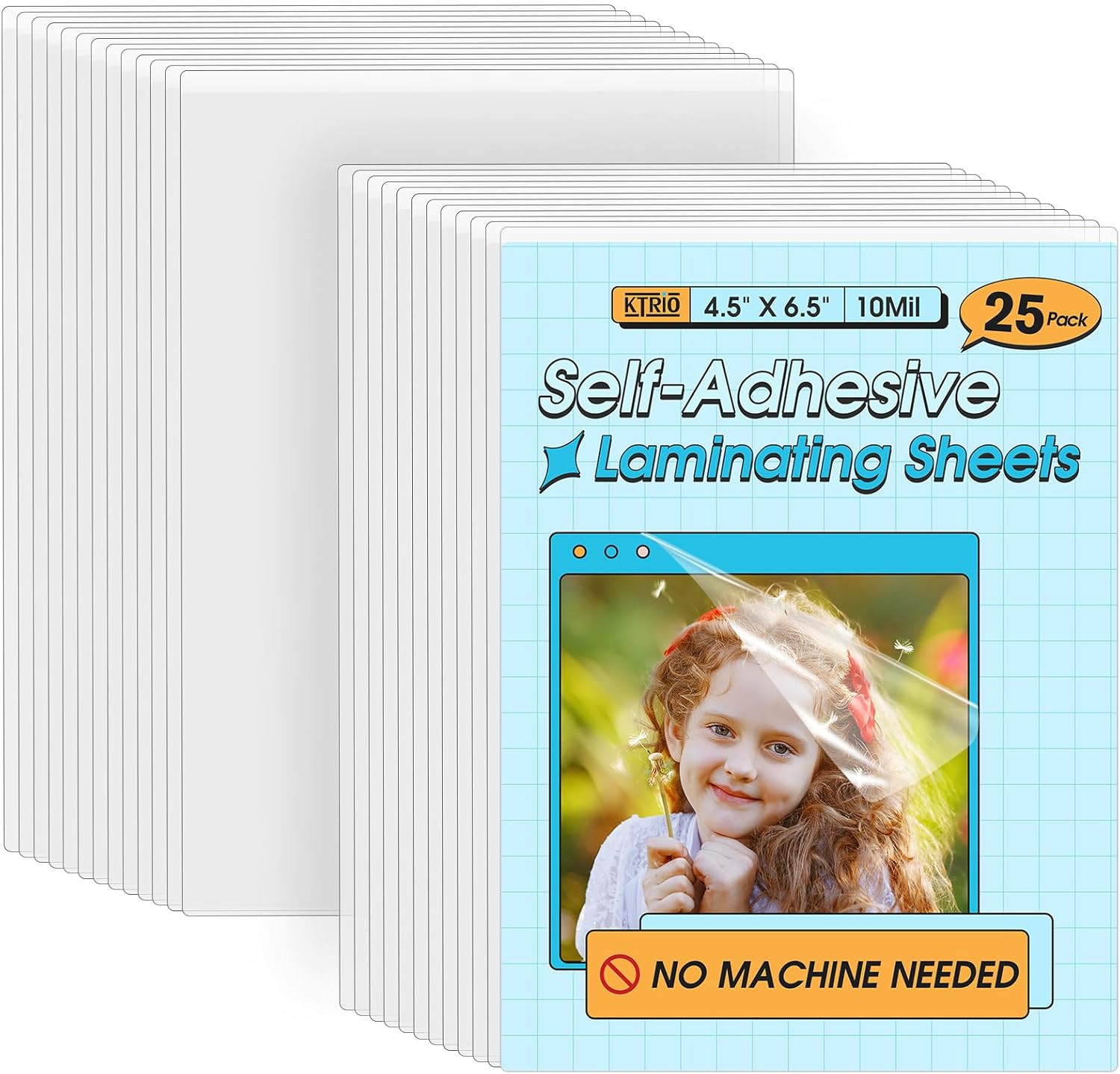 25 Pack Self Adhesive Laminating Sheets 4.5x6.5 Clear 10 Mil No Heat Pouches