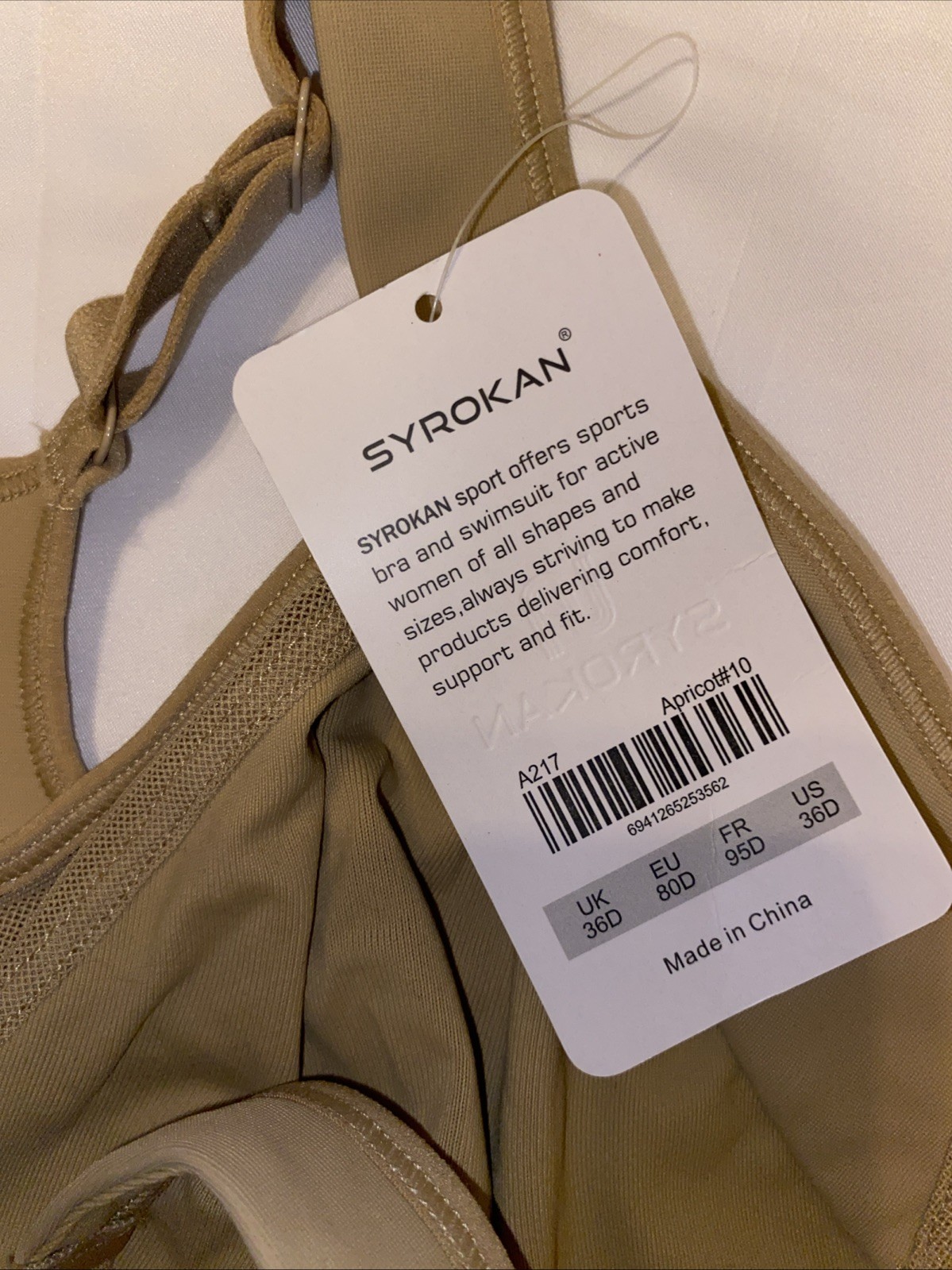 2 SYROKAN Women Sports A 217 Bra High Impact Support 36D Apricot 10