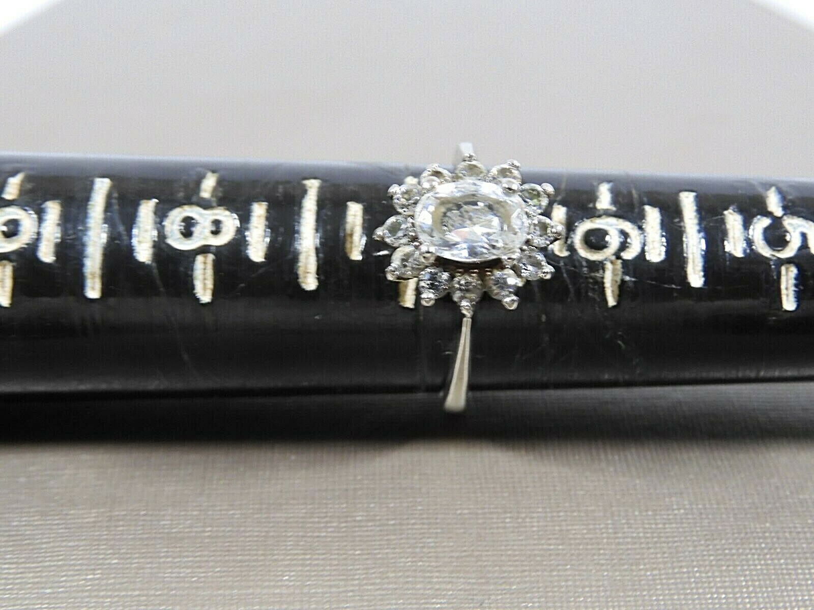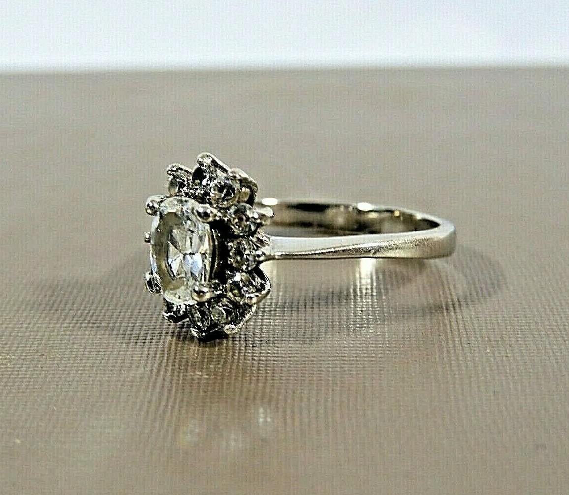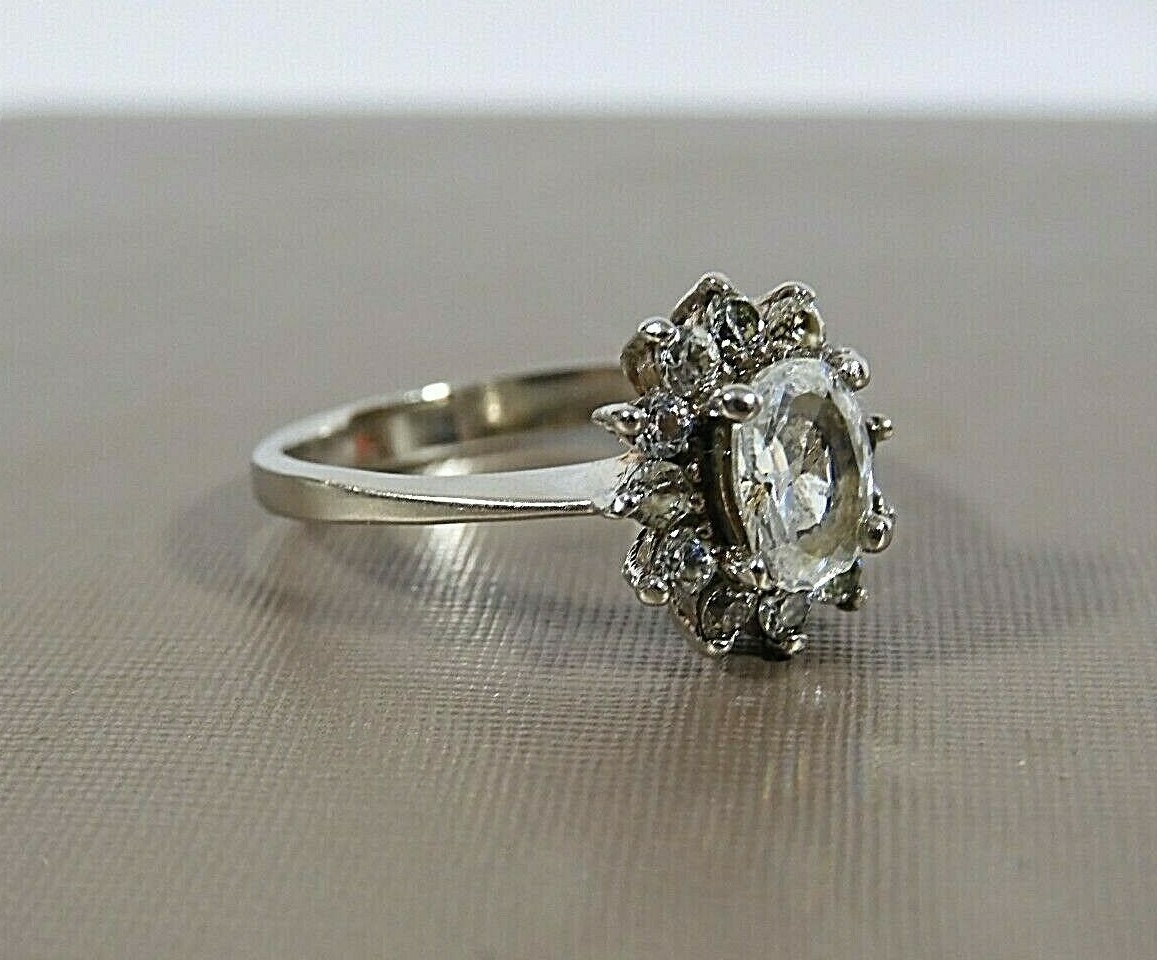 VTG 925 STERLING SILVER CLEAR CZ OVAL CENTER CLASSIC CLUSTER HALO RING S 6.5