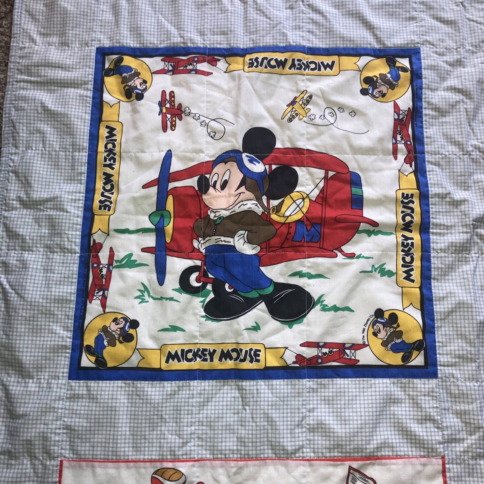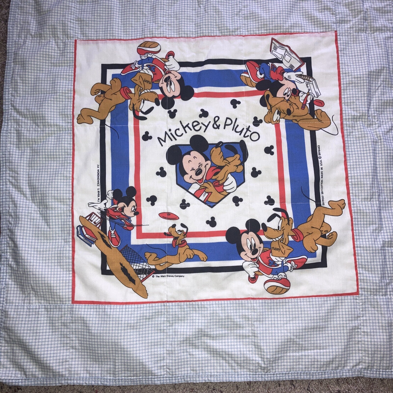 Vintage Disney Baby Blanket Quilt Mickey Comforter Baby Blanket 72x51 RARE