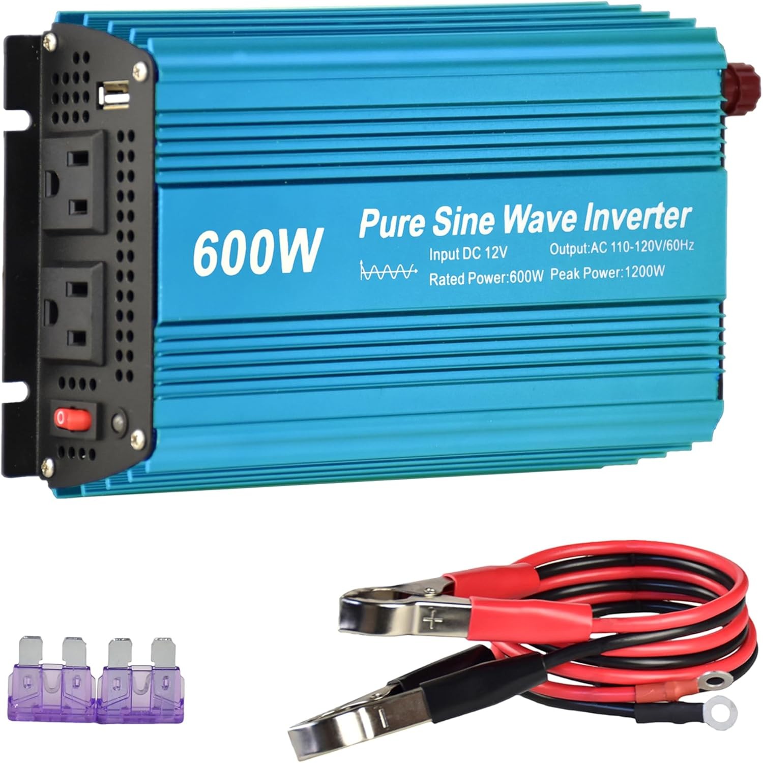 DC 12V to AC120V Pure Sine Wave Power Inverter 600W with Dual sockets