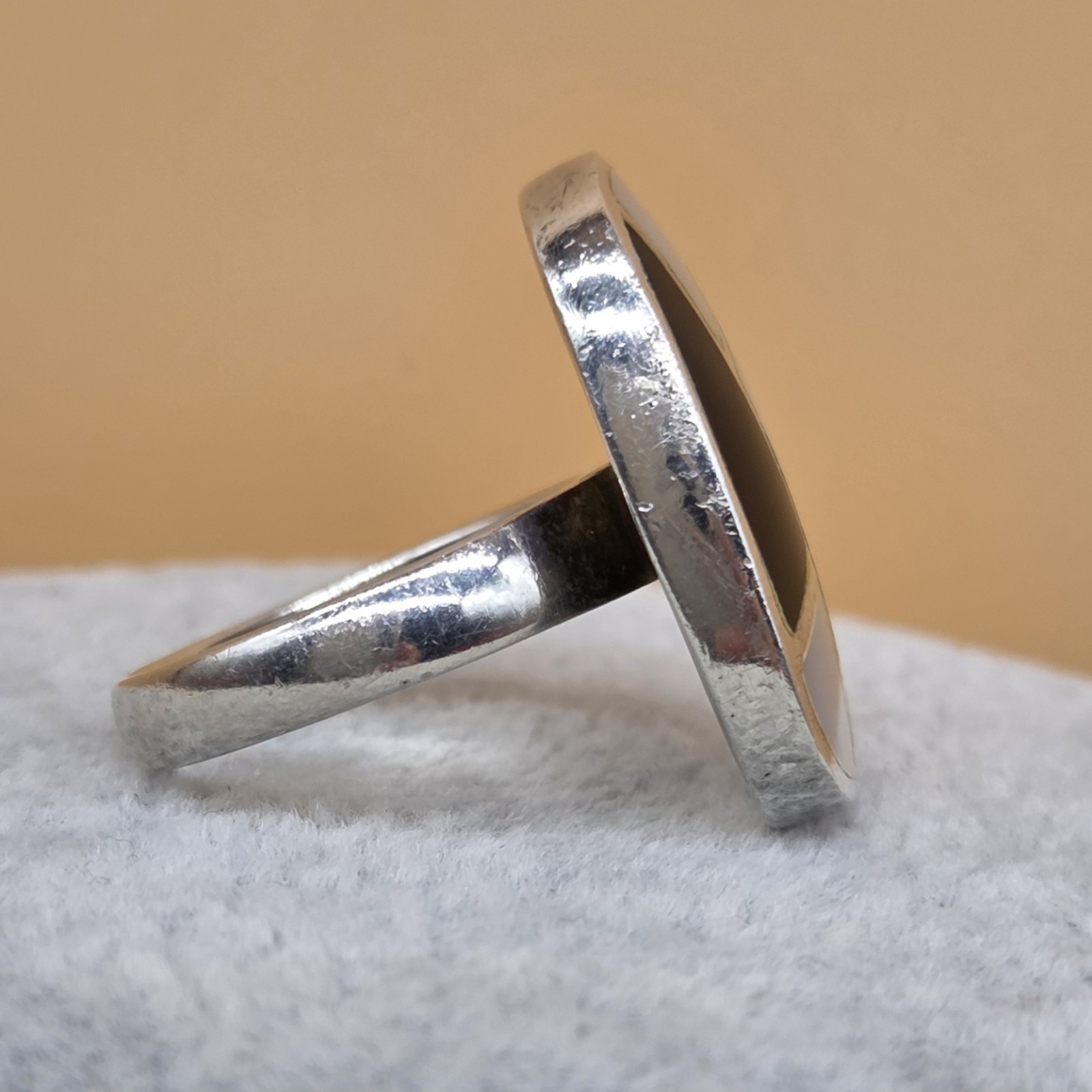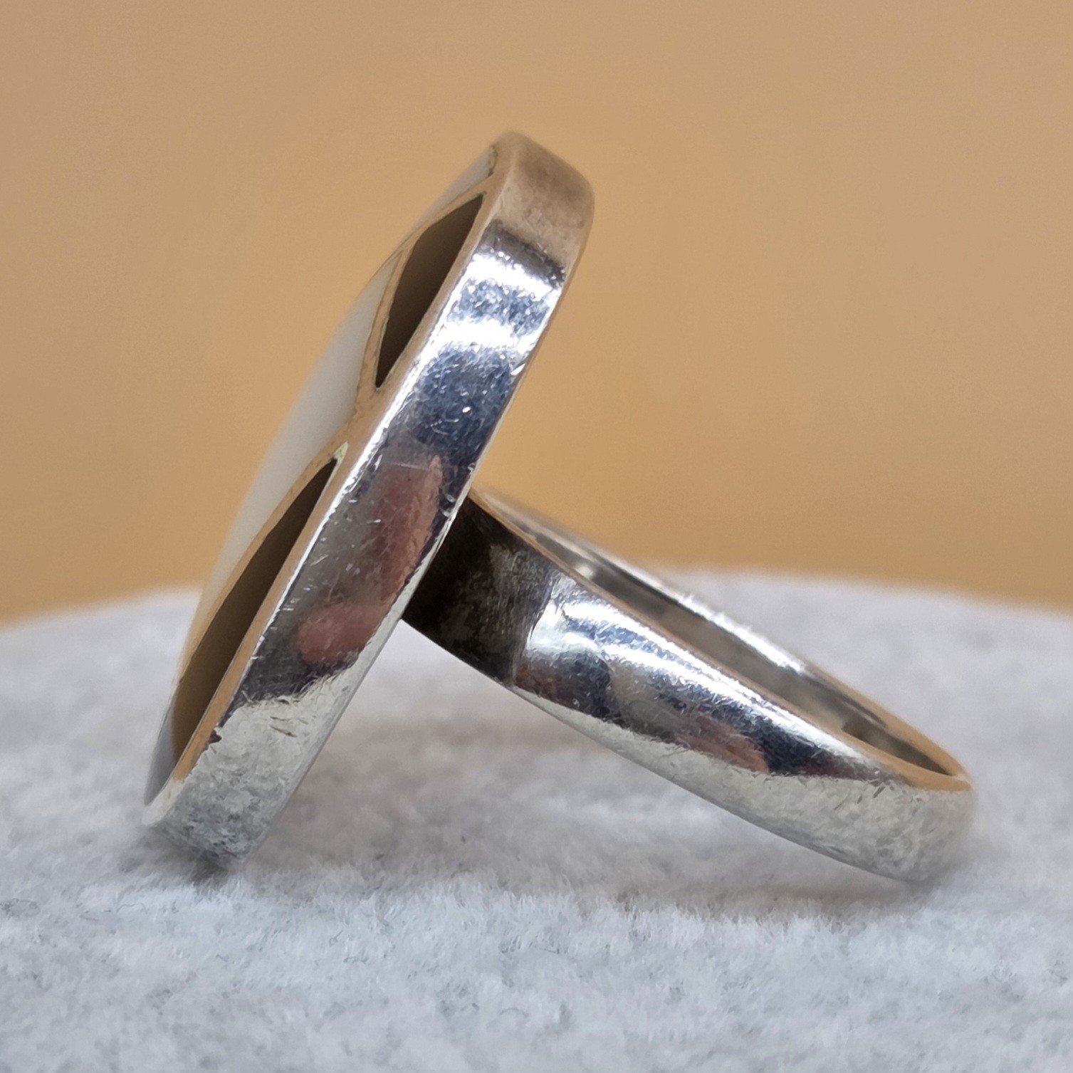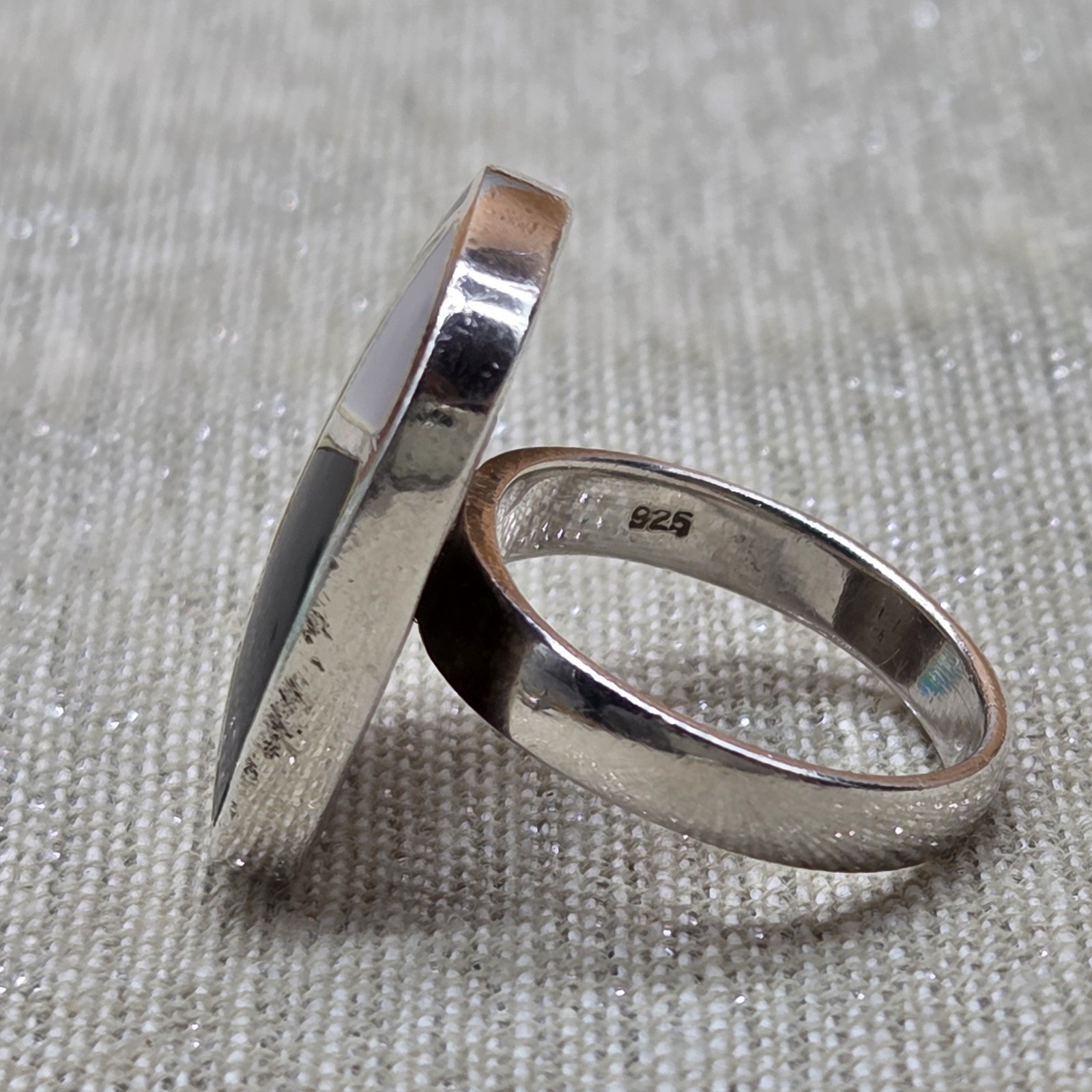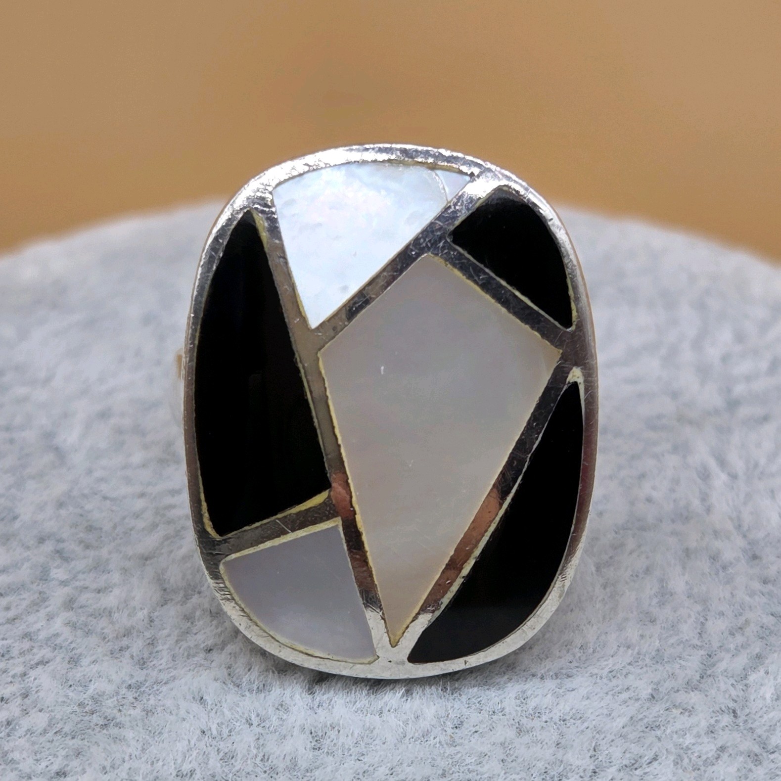 как выглядит Sterling Silver 925 Black Onyx Mother of Pearl/Shell Zuni Inlay Ring 6.75 READ фото