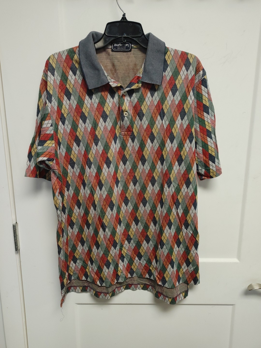 Vintage 90s Burberrys Rare Argyle Polo Shirt Pre-1999 Made in U.S.A. Size Med