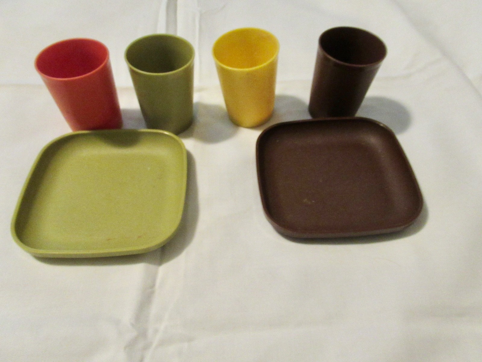 Vintage Tupperware mini plates and glasses 2 plates and 4 glasses harvest color