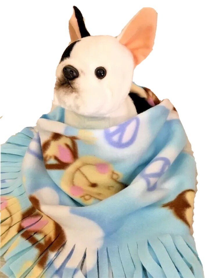 DOG SIZE FLEECE BLANKETS, Pet Blanket Travel Throw Cover YOGA MONKEY BLUE