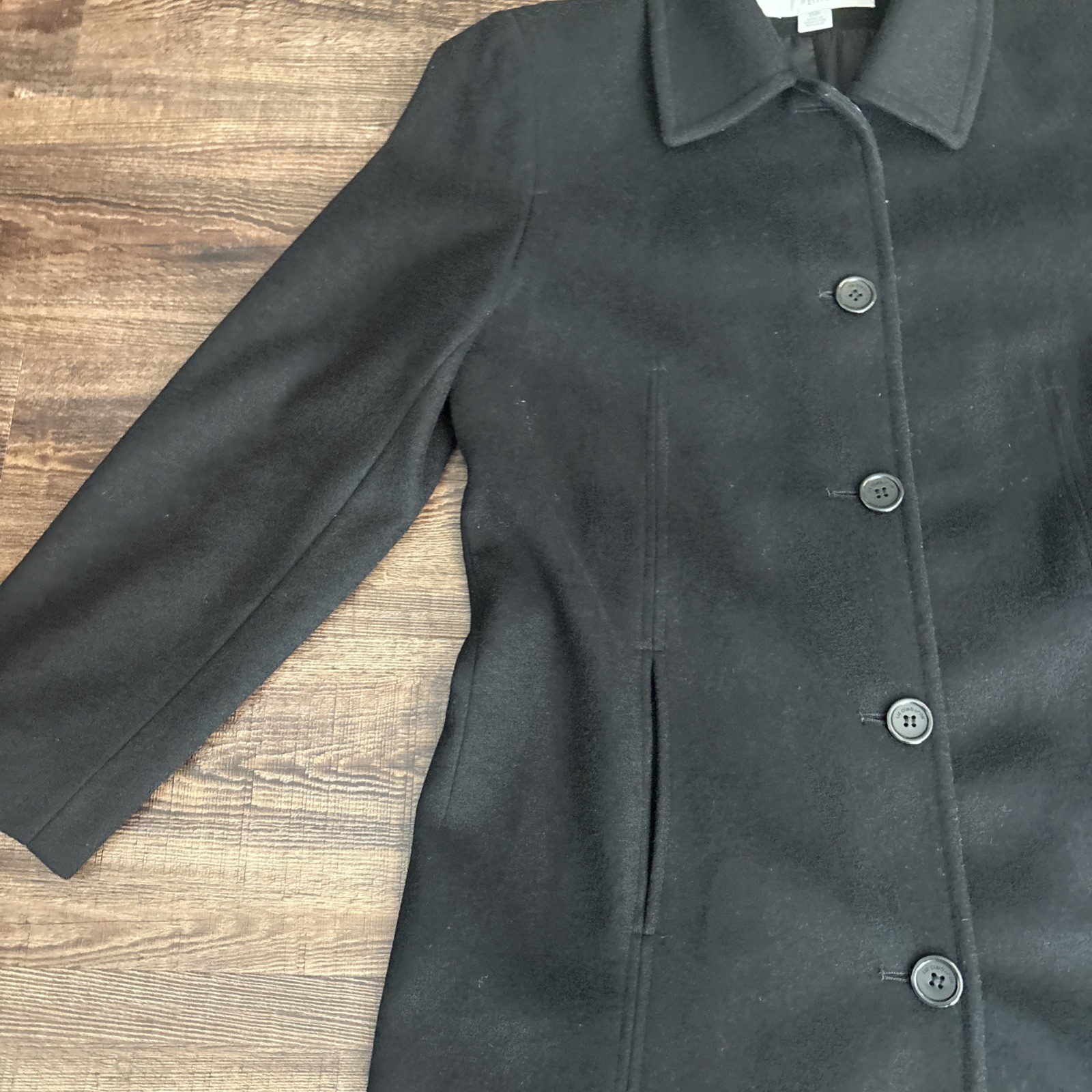 Vintage 90 s Maxi Wool Trench Coat Black 8 Petite Classic Timeless Quality