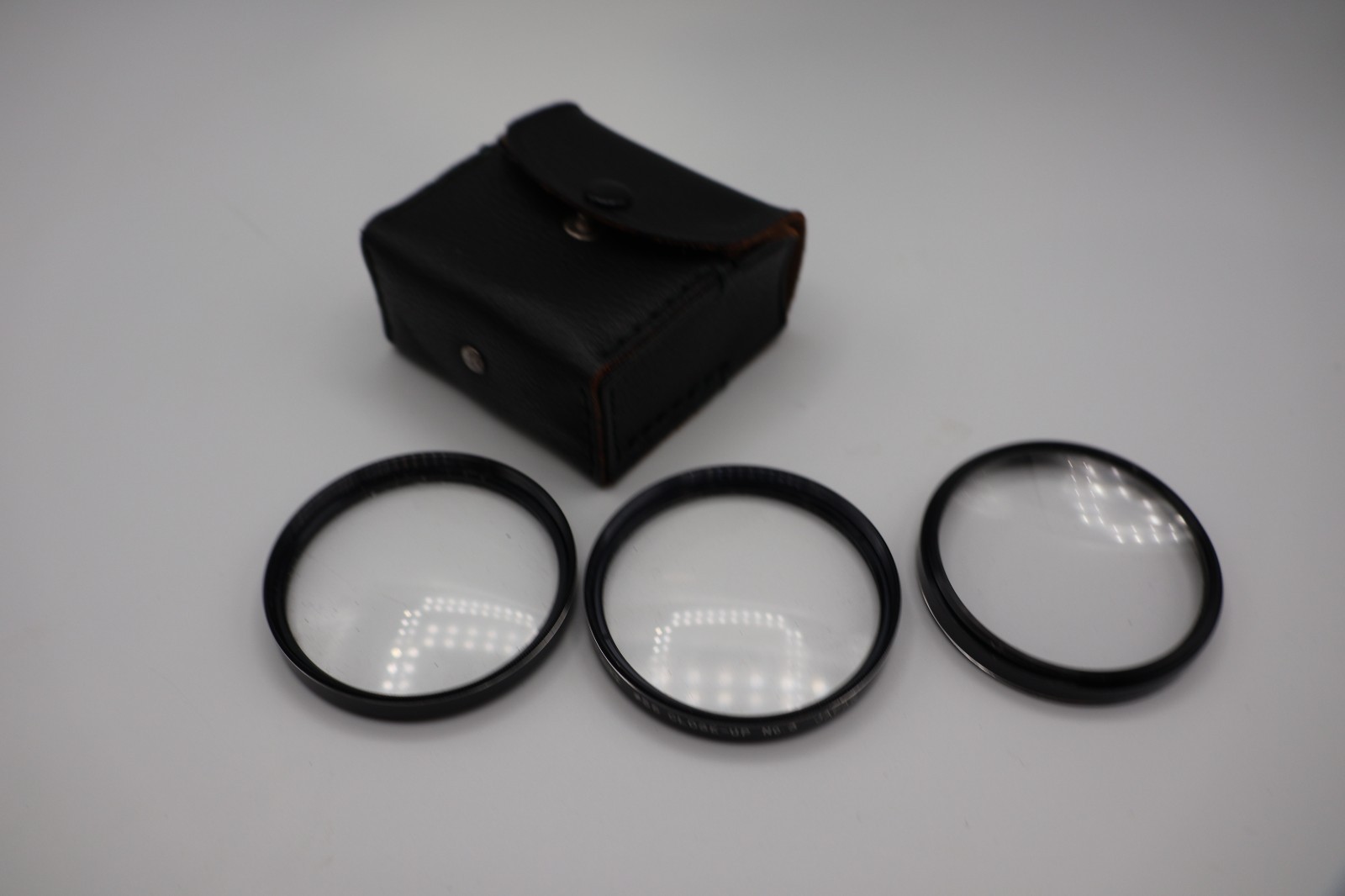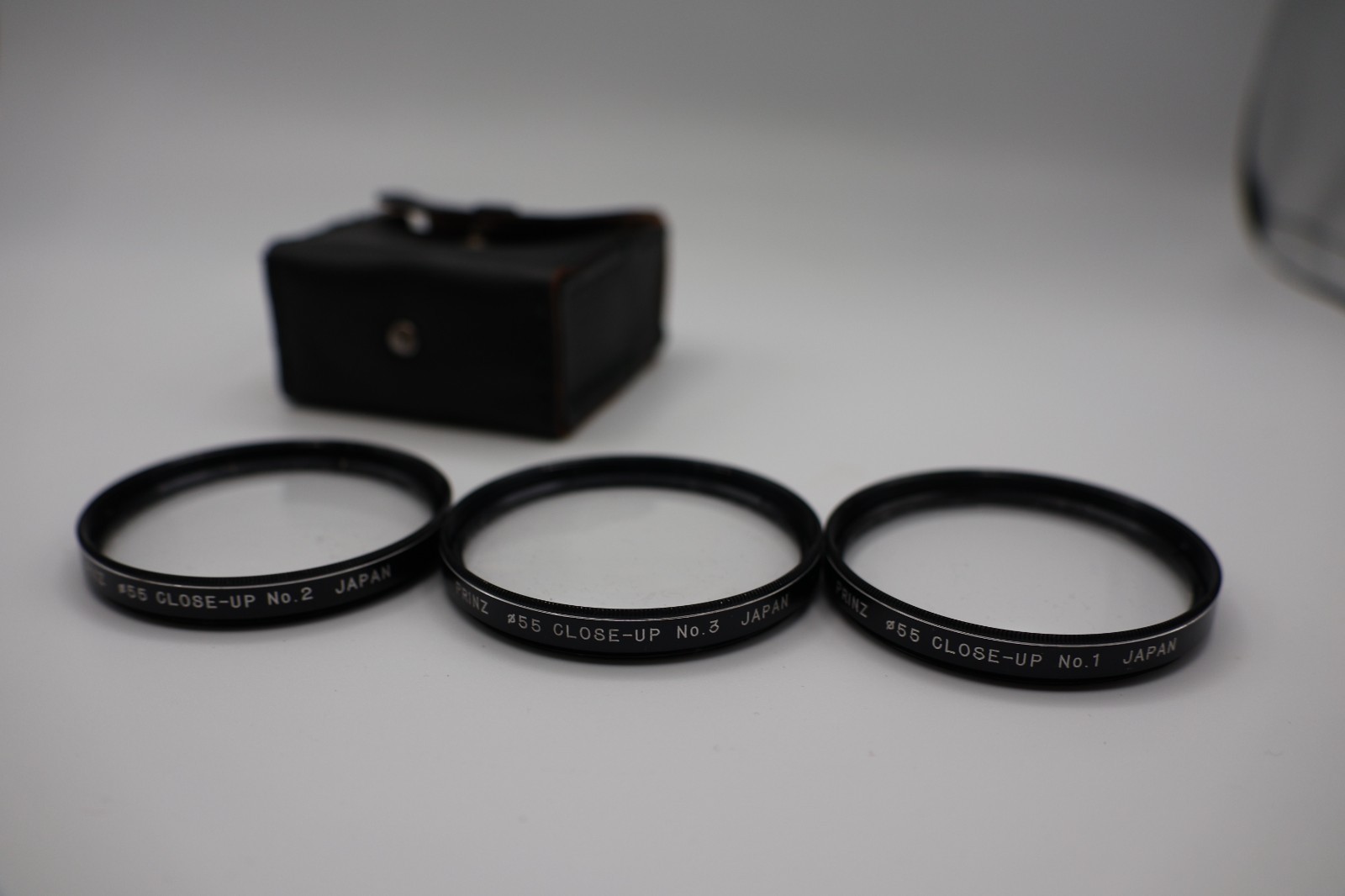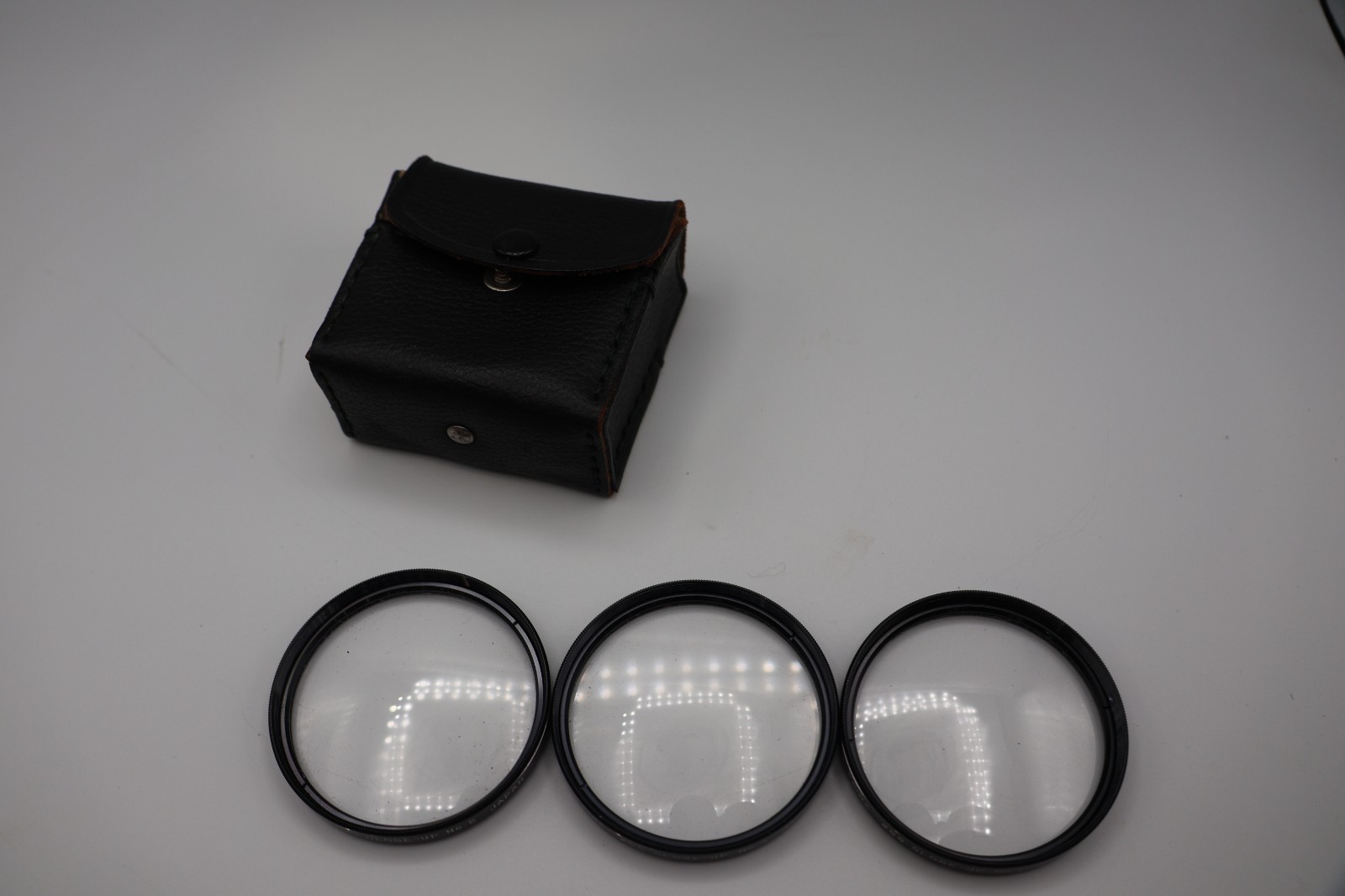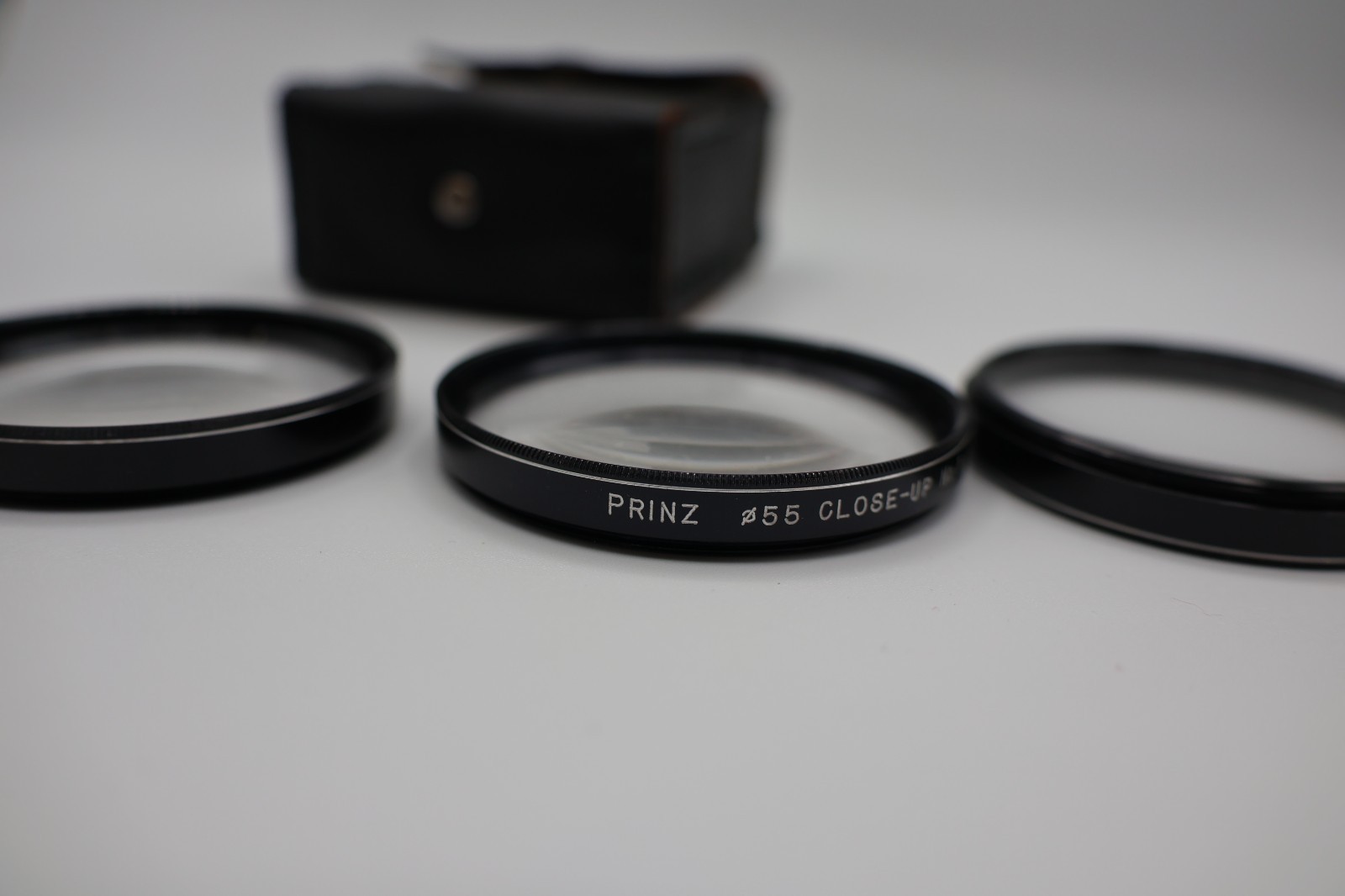 Prinz 55 mm close-up lens filters in leather case, No. 1,2, 3 SET VTG- duts