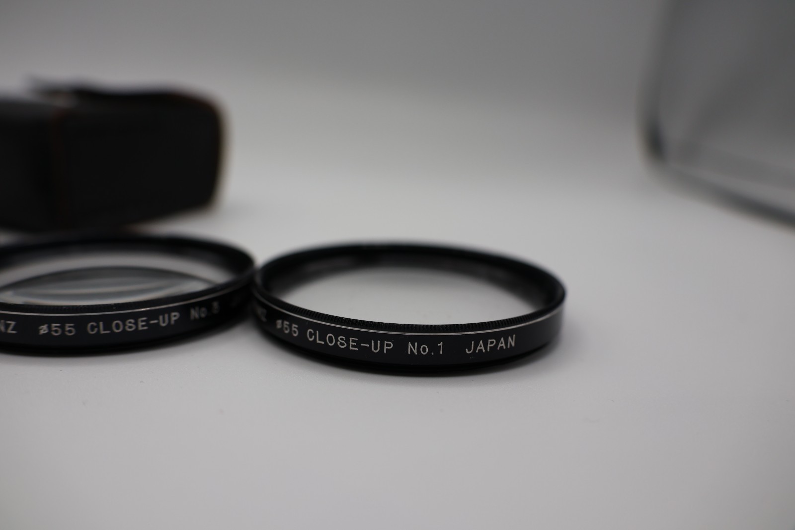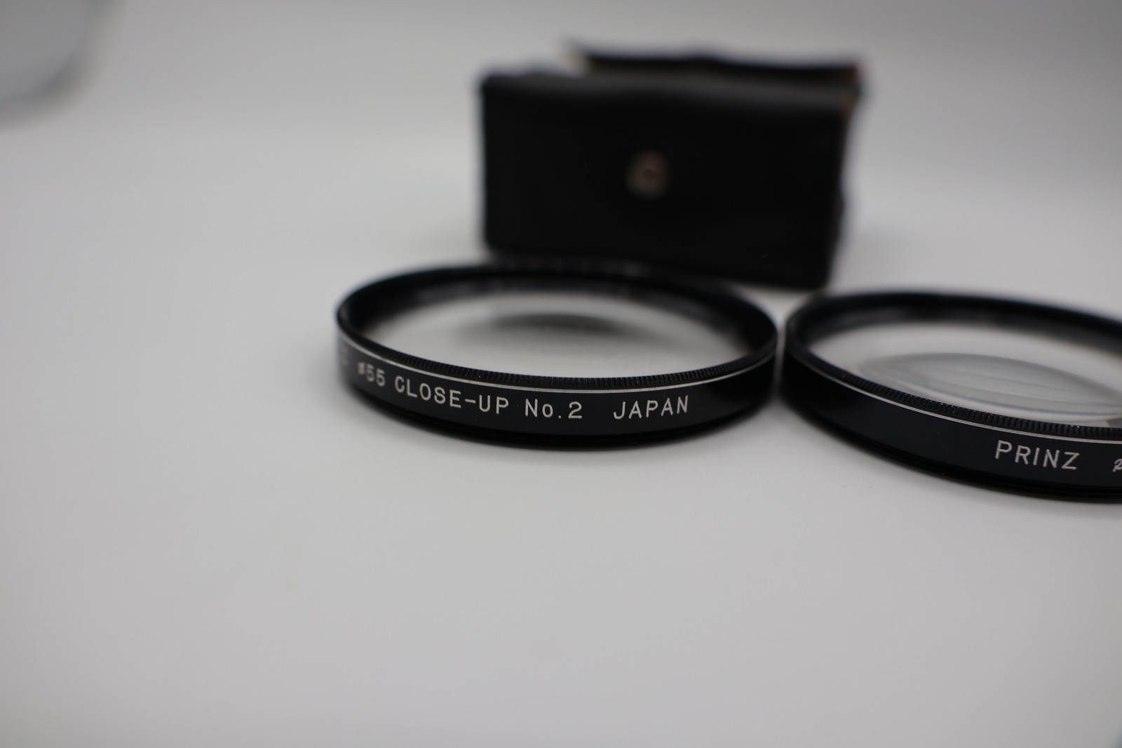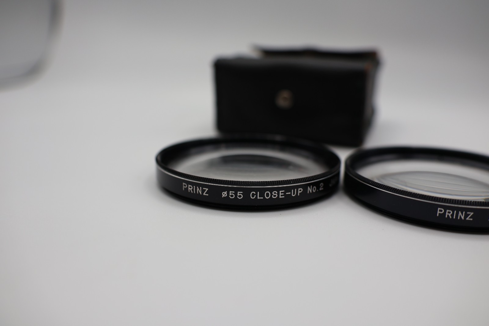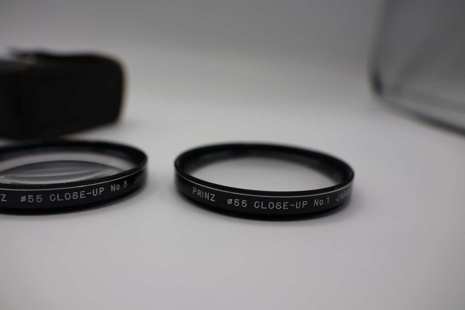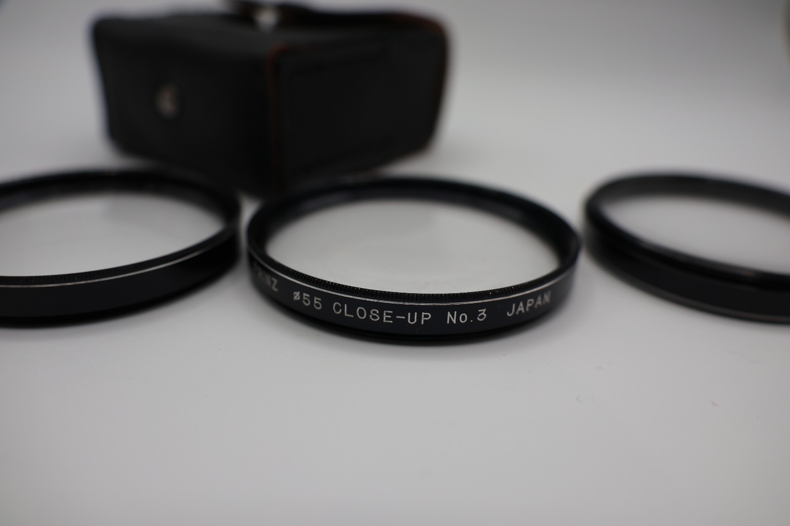 Prinz 55 mm close-up lens filters in leather case, No. 1,2, 3 SET VTG- duts