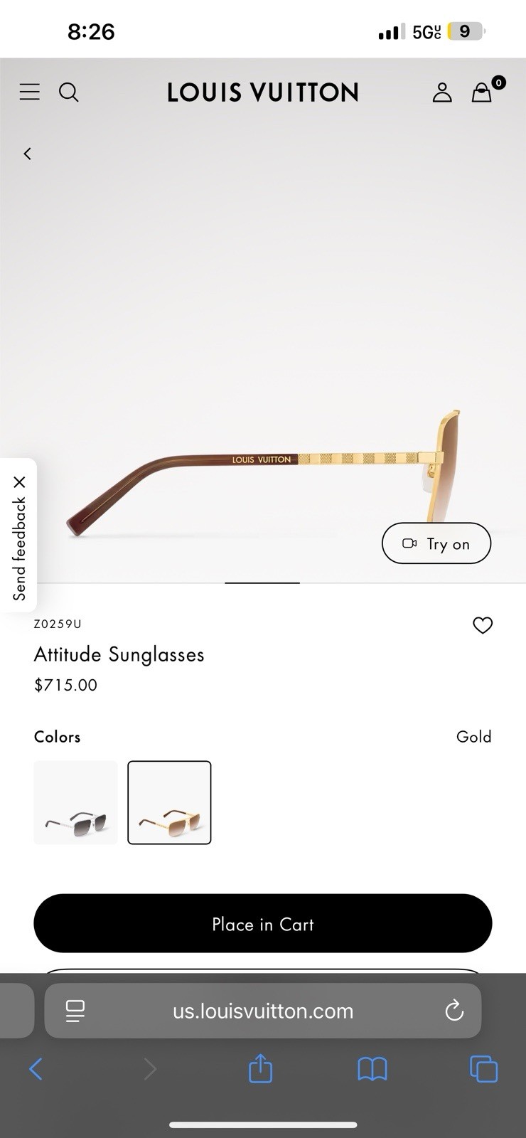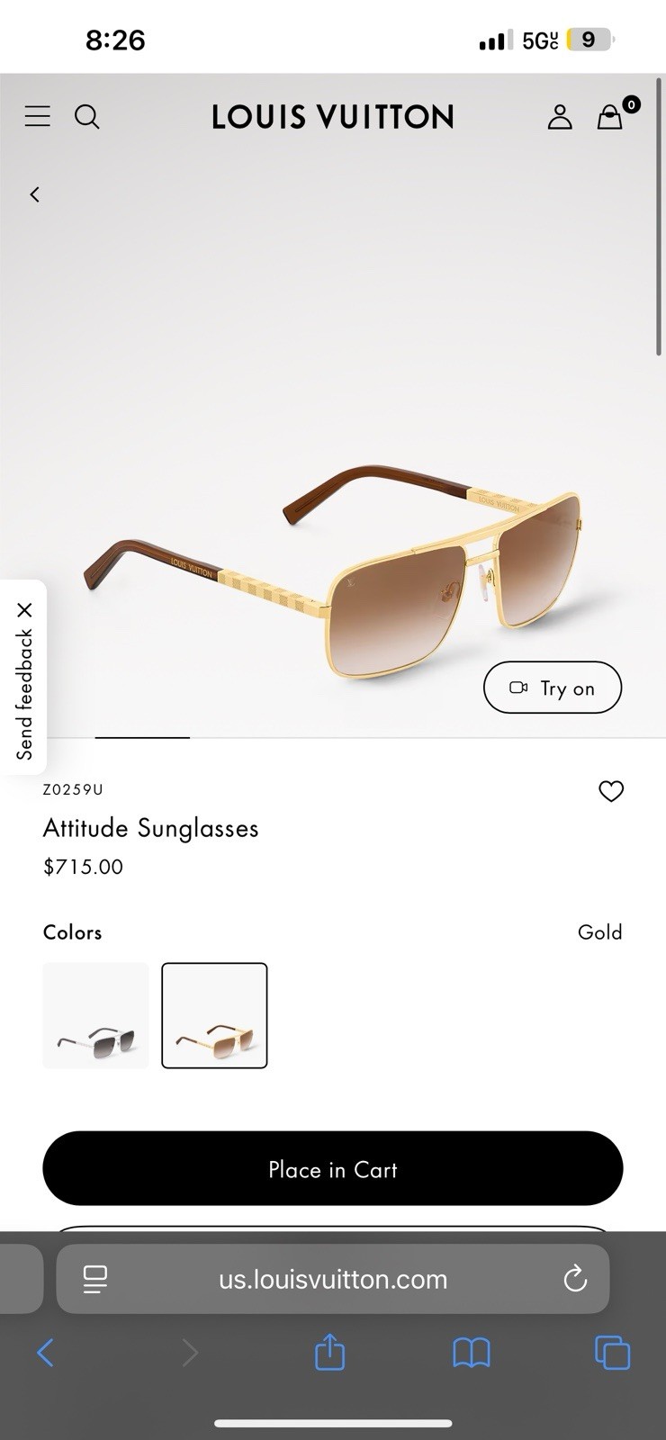 Louis Vuitton Men's Sunglasses Golden Brown Attitude Z0259U