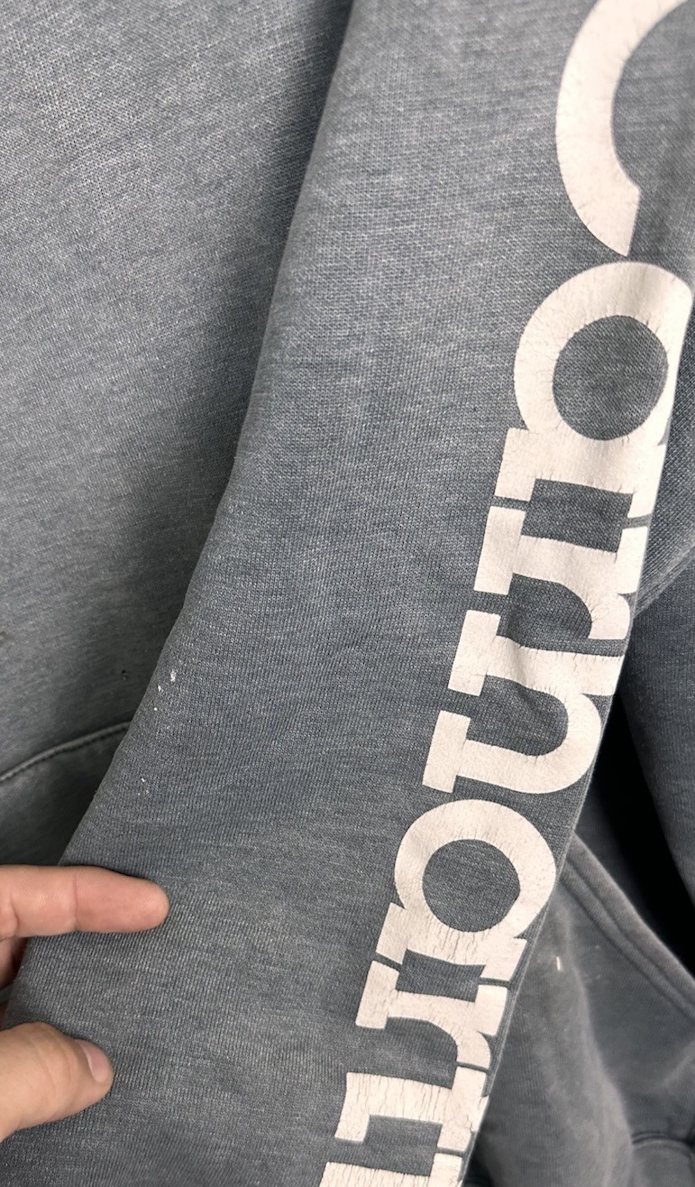 Vintage Carhartt Men s Gray Spell Out Sleeves Distressed Hoodie Sweatshirt Sz L