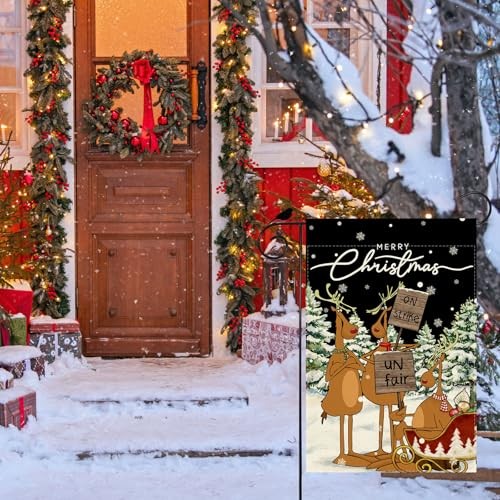 Merry Christmas Garden Flag Funny On Strike Unfair Deers Xmas Trees 12x18 Inch