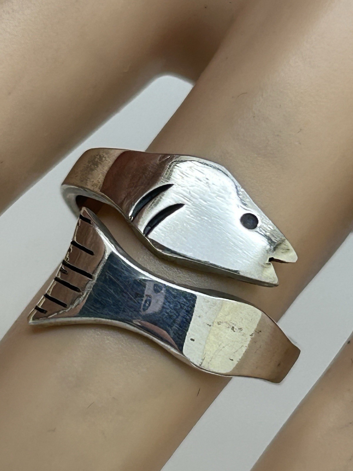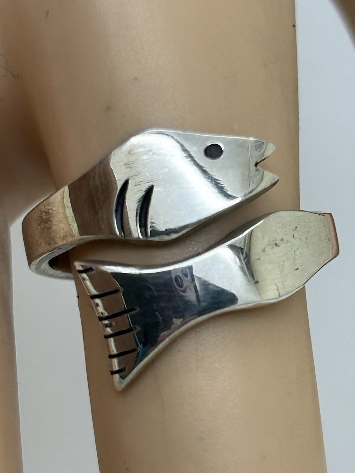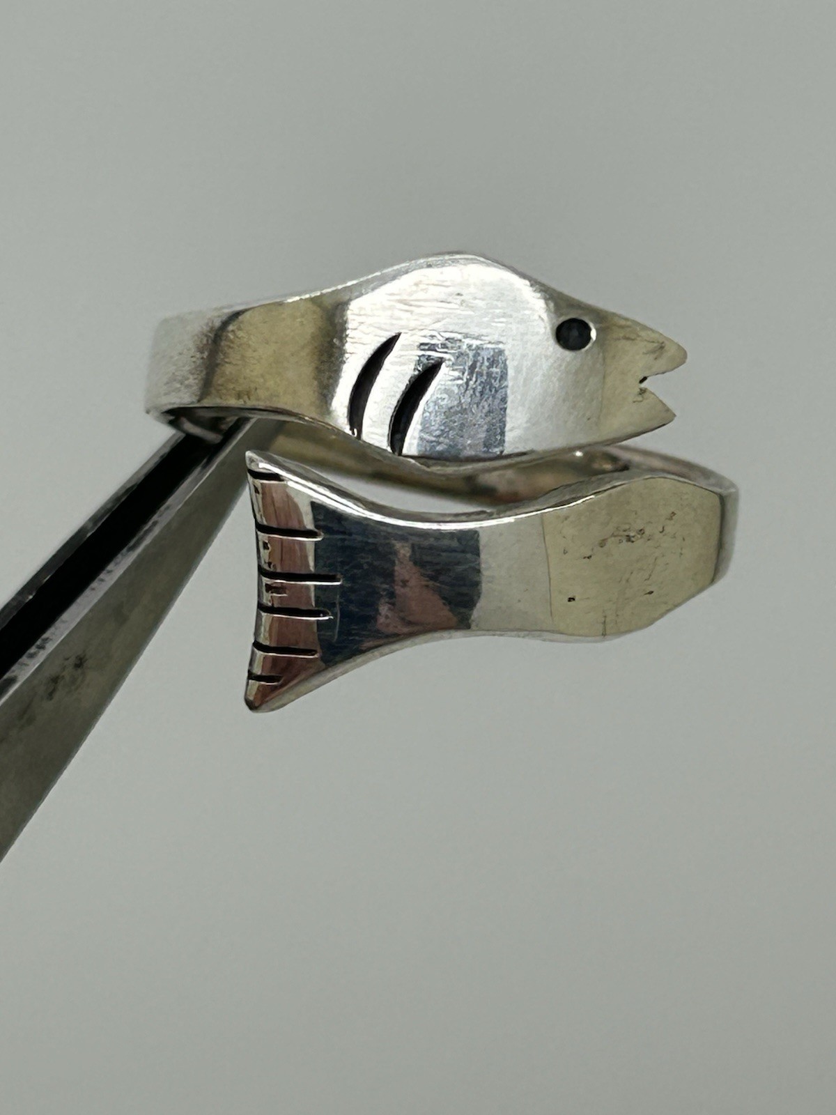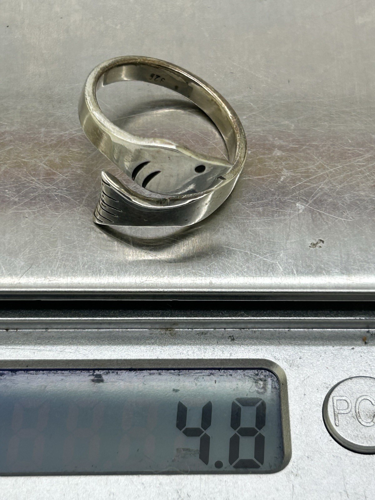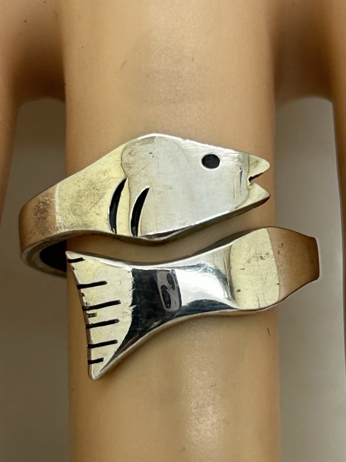 как выглядит 925 Sterling Silver Vintage Fish Ring Size 8/ Adjustable. фото