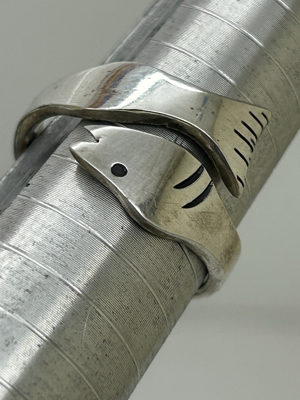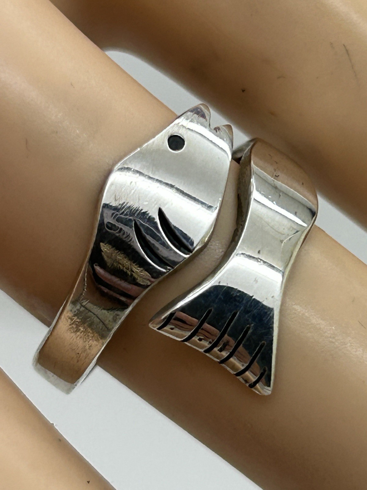 925 Sterling Silver Vintage Fish Ring Size 8/ Adjustable.