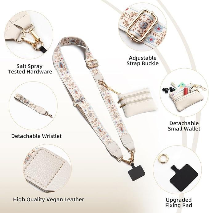 Cell Phone Lanyard Crossbody Adjustable Strap w/ Wristlet Clip Wallet
