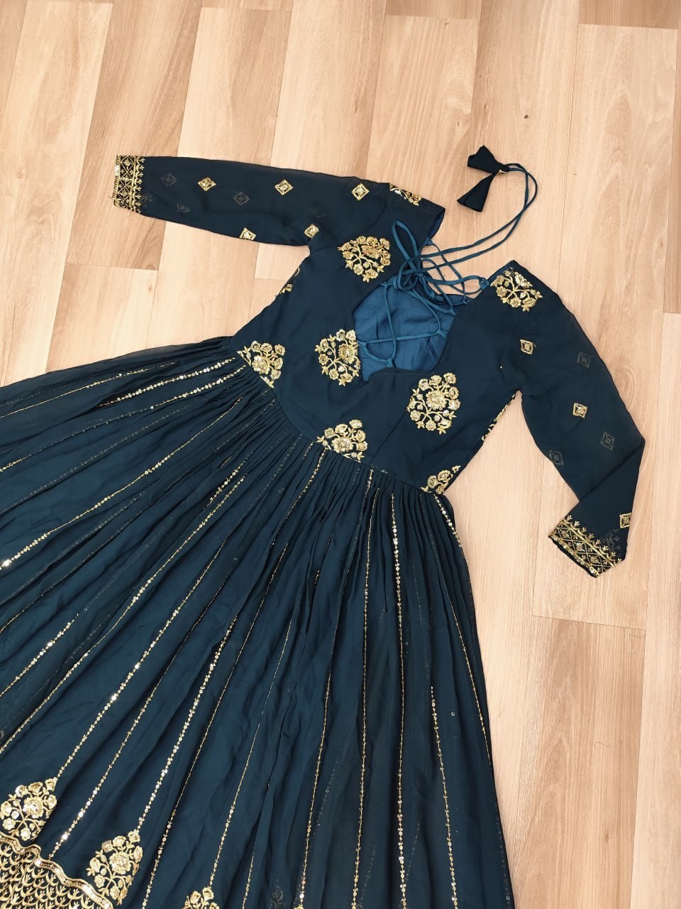 FABRICS & WORK: Faux Blooming with Rich Zari & Sequins Embroidered Work.