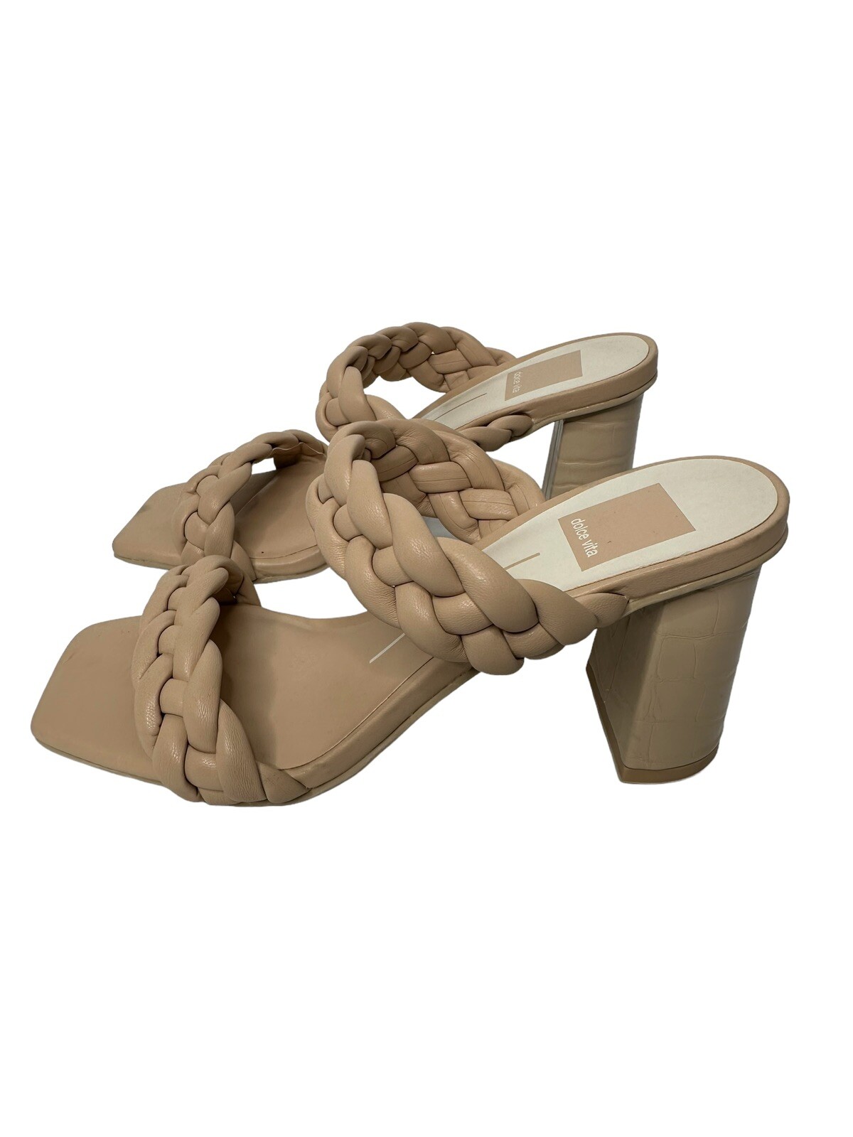 NWOT Dolce Vita Women Braided Heeled Paily Sandals 6.5 Slip On Vegan Leather Tan