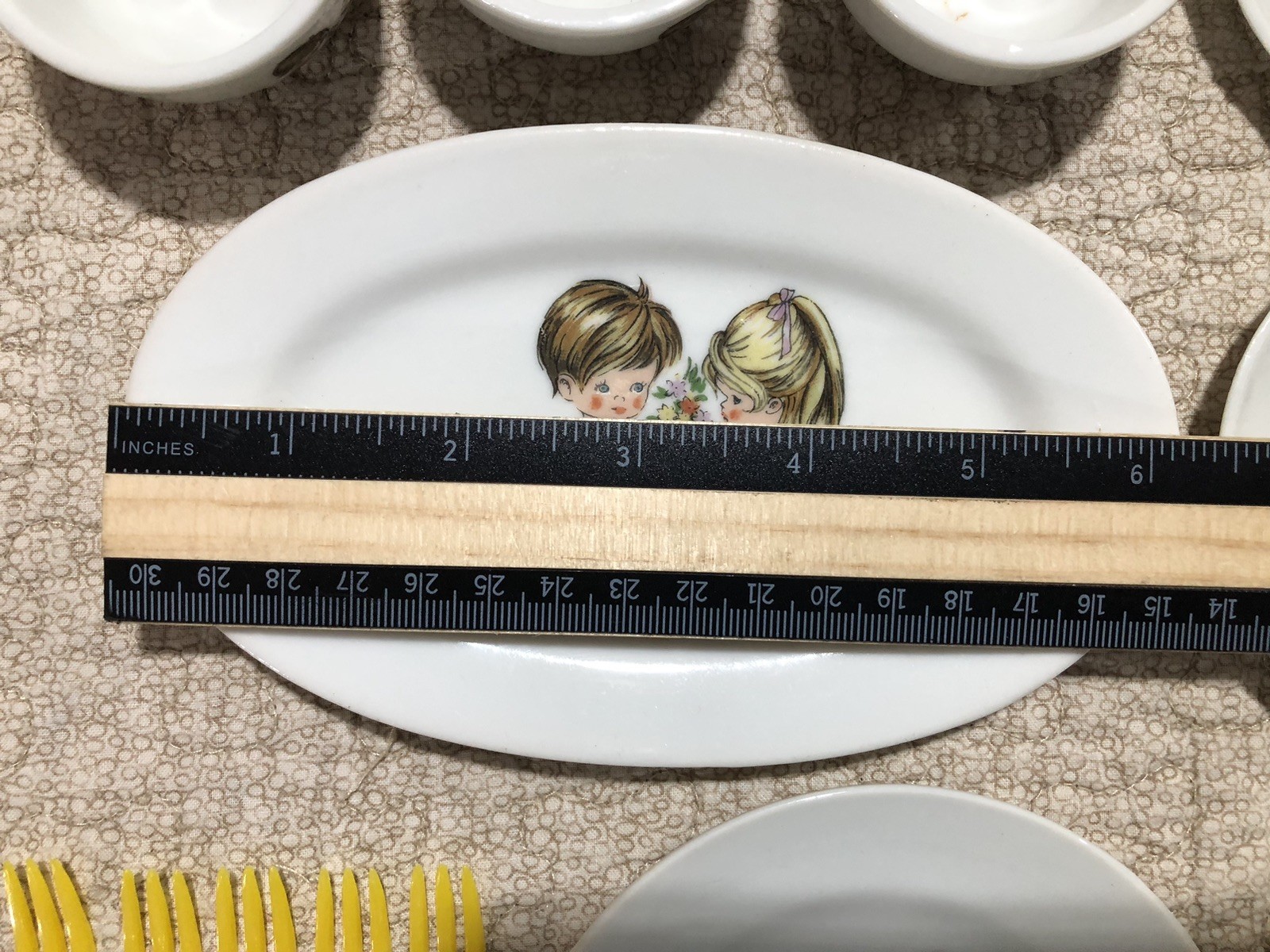 как выглядит Vtg JAPAN 1950s Childs 23 PC Ceramic Mini Toy Tea Set - Boy Giving Girl Flowers фото