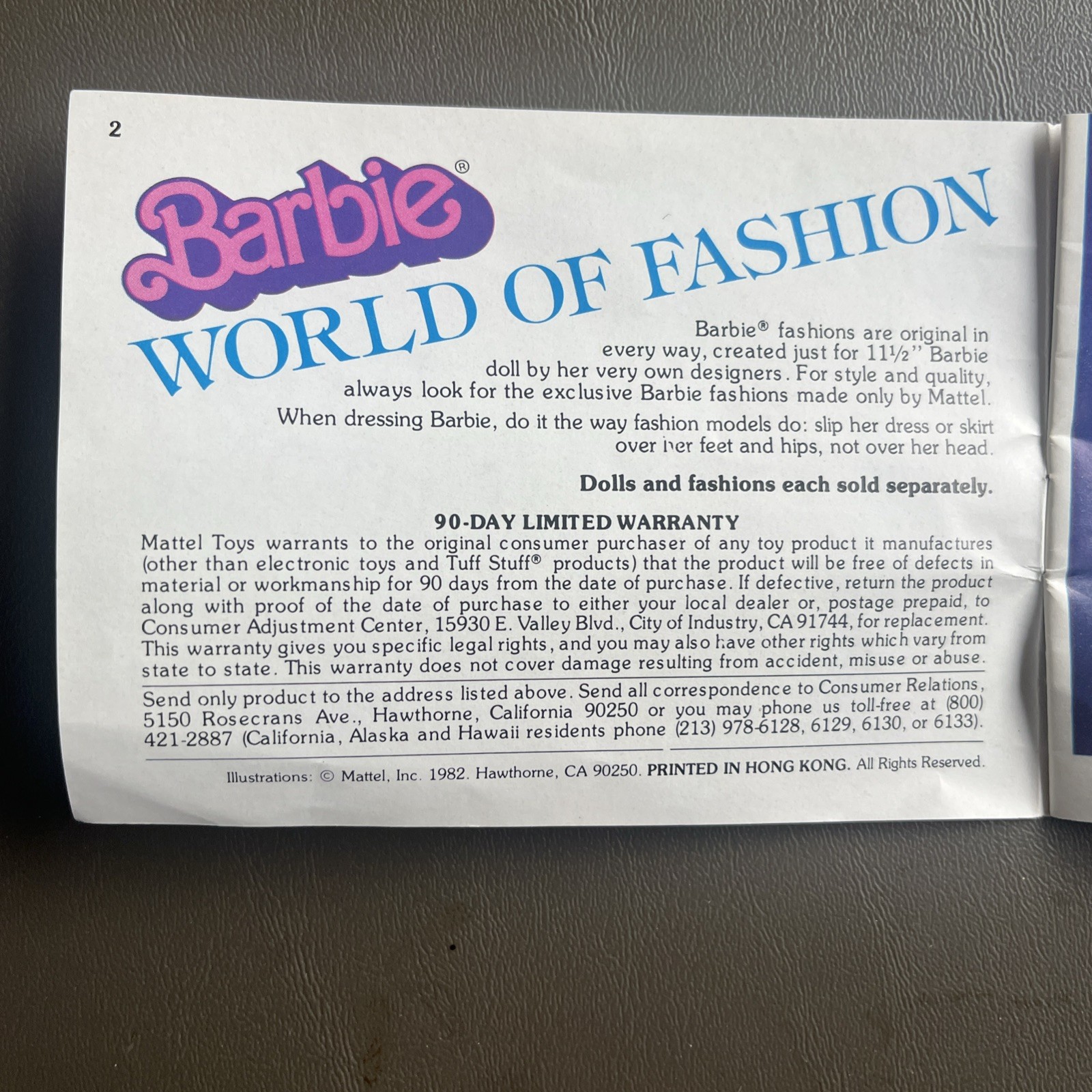 Vintage Barbie World of Fashion Motel 0007 4100 Insert w Color Pictures