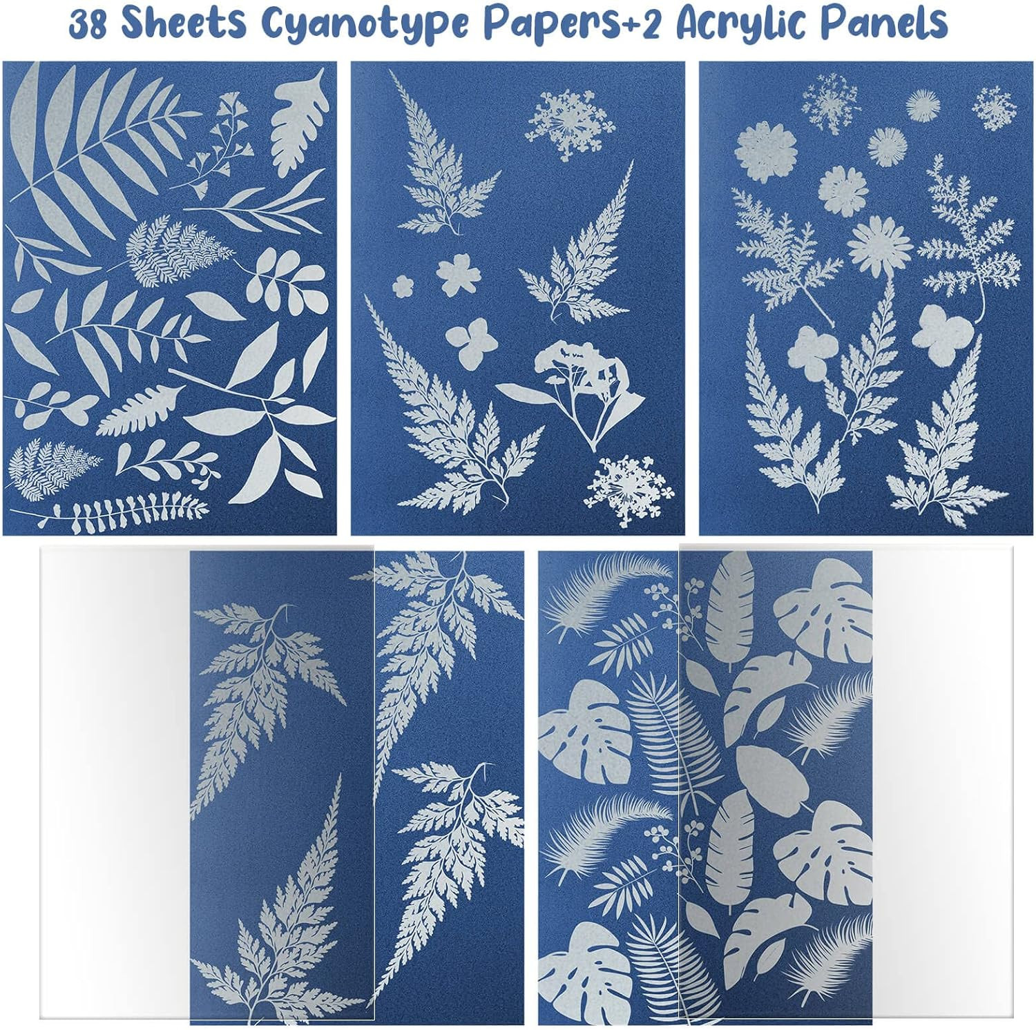 • 38 Sheets Cyanotype Sun Print Kit with Acrylic Sheets A5 Solar Drawing Paper