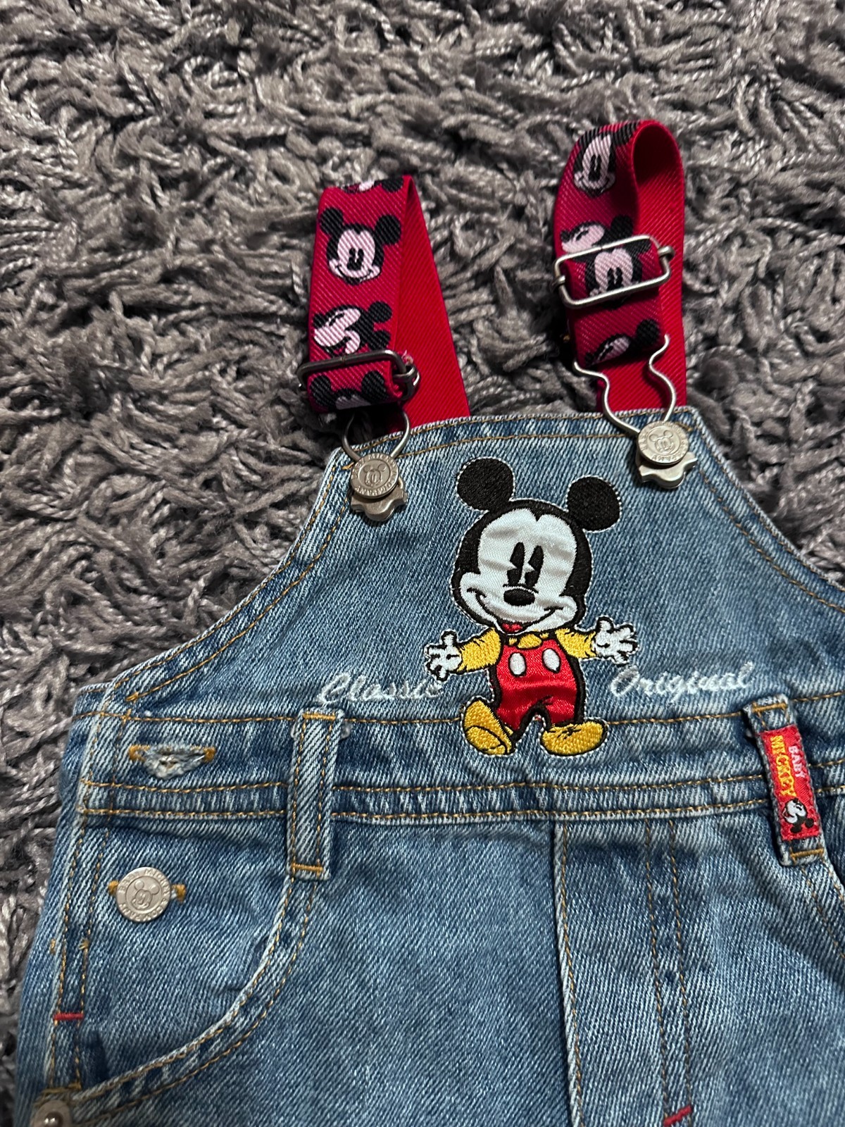 как выглядит Vintage Disney Denim Emboridered Overalls Mickey 3/6M фото