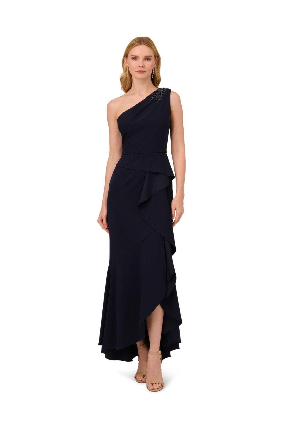 как выглядит adrianna Papell Womens Beaded One-Shoulder Gown - Midnight - 4 фото