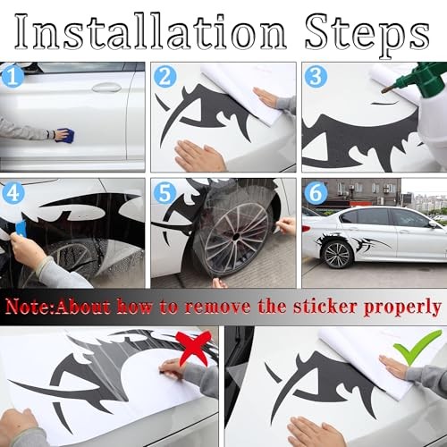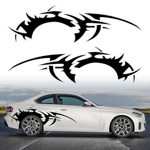 TOMALL 2Pcs 66'' Flame Graphics Stickers Car Body Side Skirt Decals Black