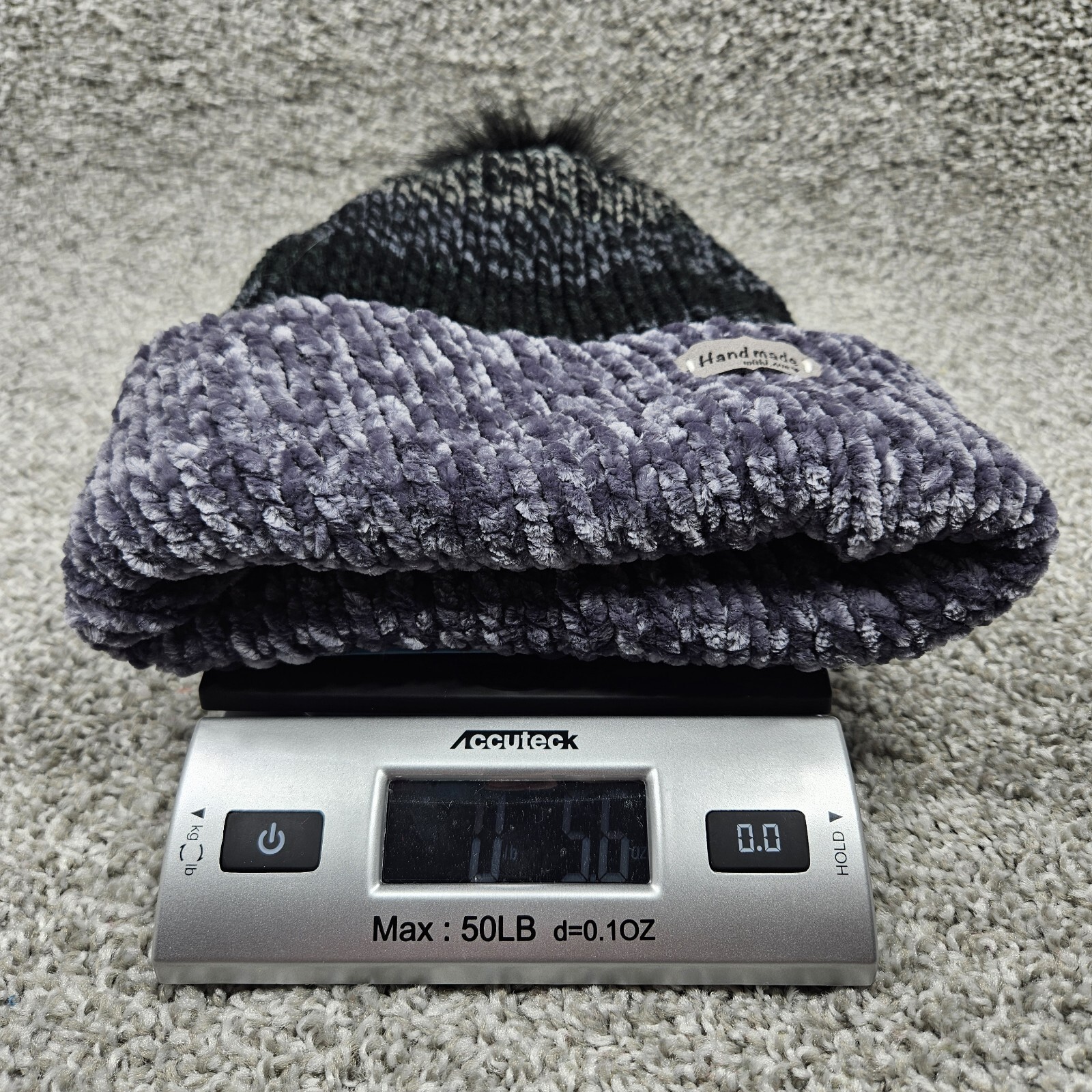 как выглядит Handmade Knit Beanie Hat Toque Toboggan Size M/L Black/Gray Warm Stretch Pom Pom фото