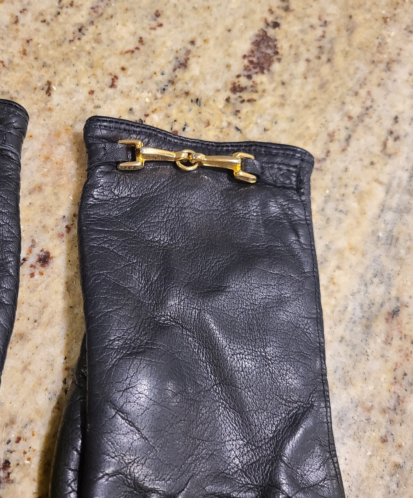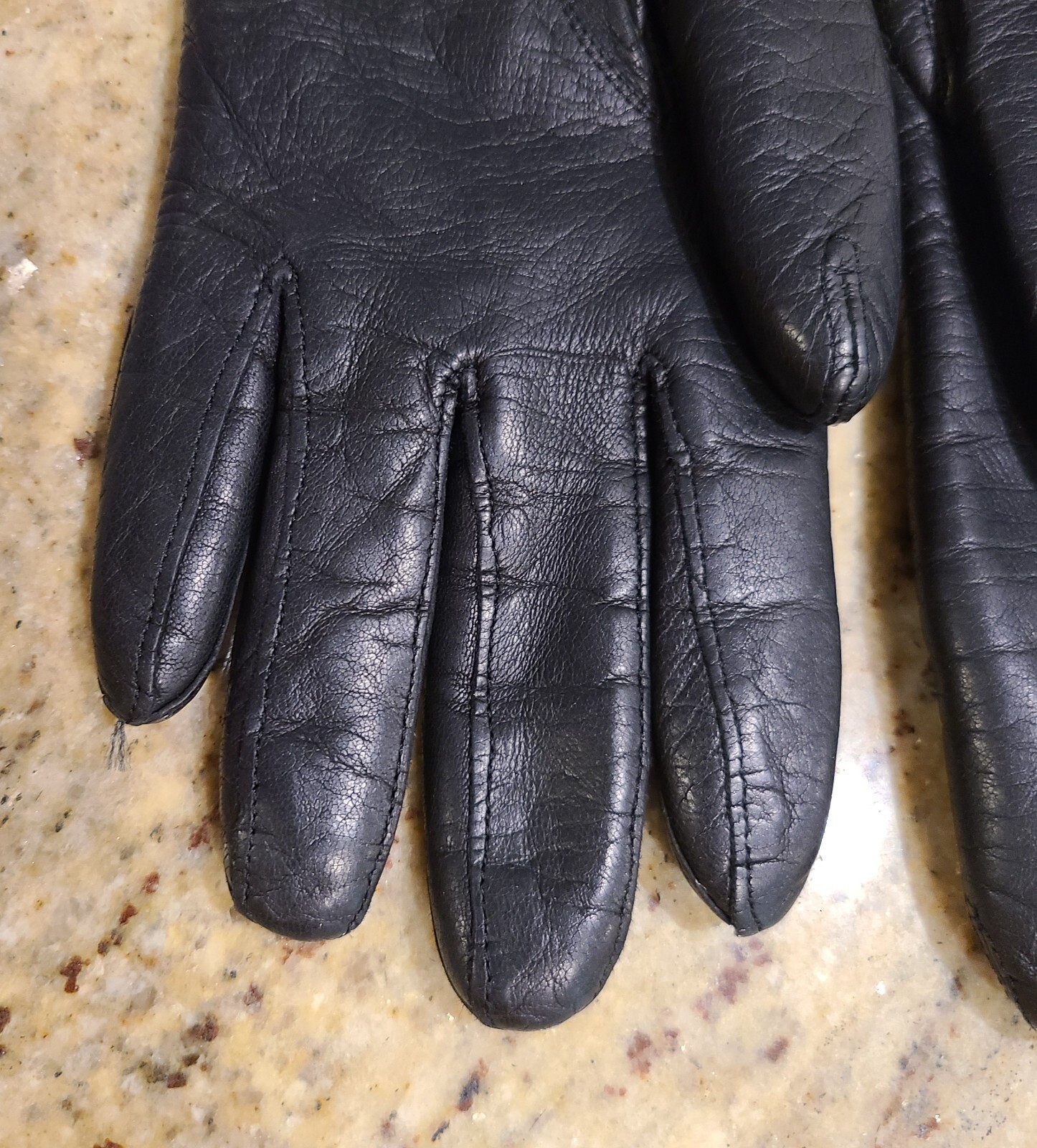 как выглядит Vintage Womens Size M Black Soft Leather Knit Lined 8.5" Gloves Buckle Detail фото