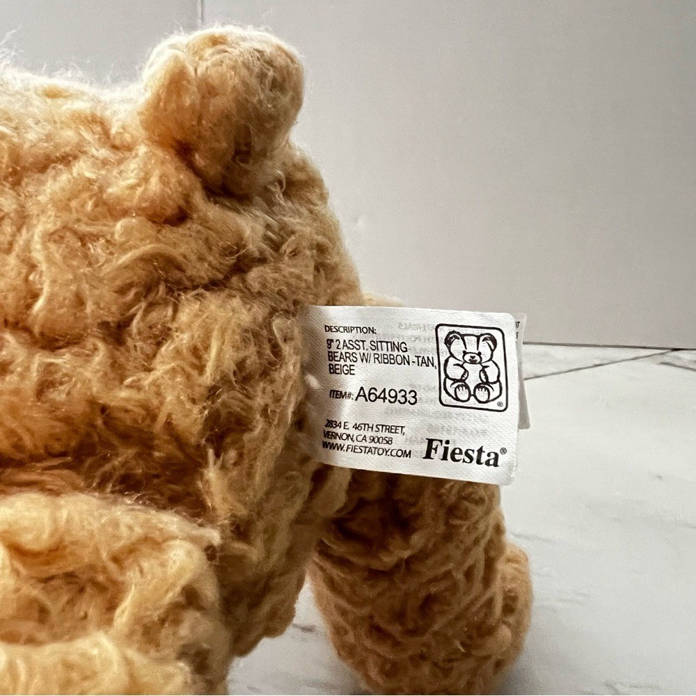 как выглядит Fiesta Sitting Tan Bear With Ribbon Bow Beige Size 13" Stuffed Animal Plush фото