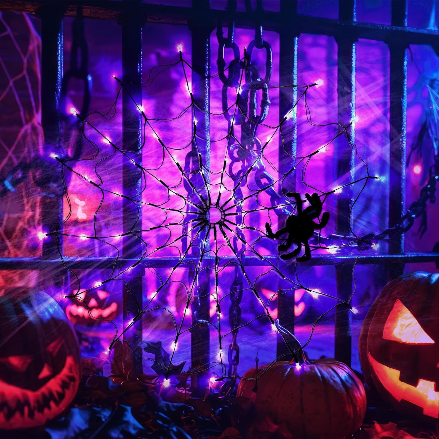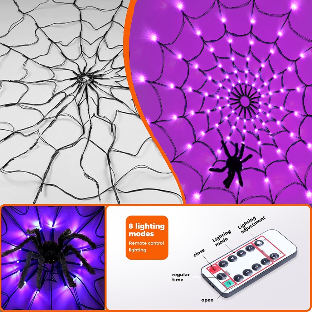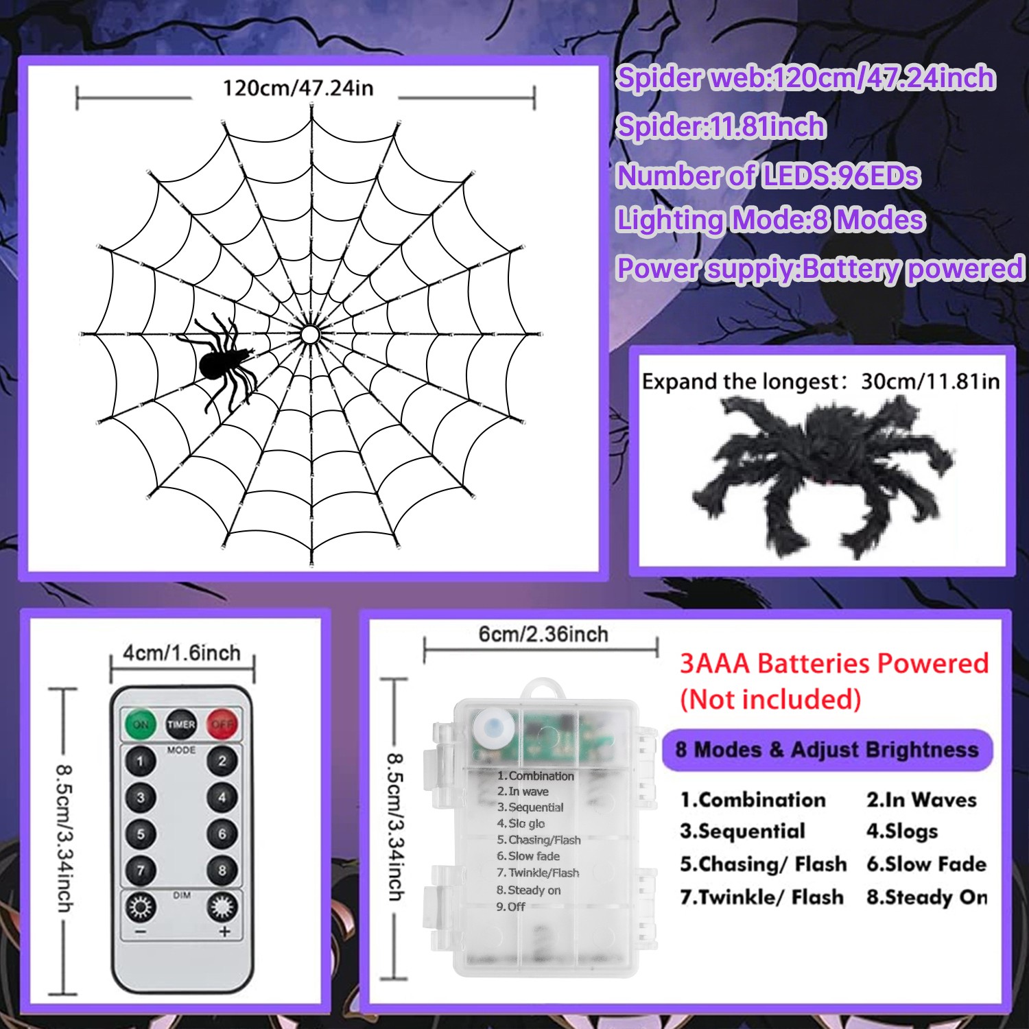 96 LED Halloween Spider Web Lights with Spider Battery Powered 8 Modes Light USA