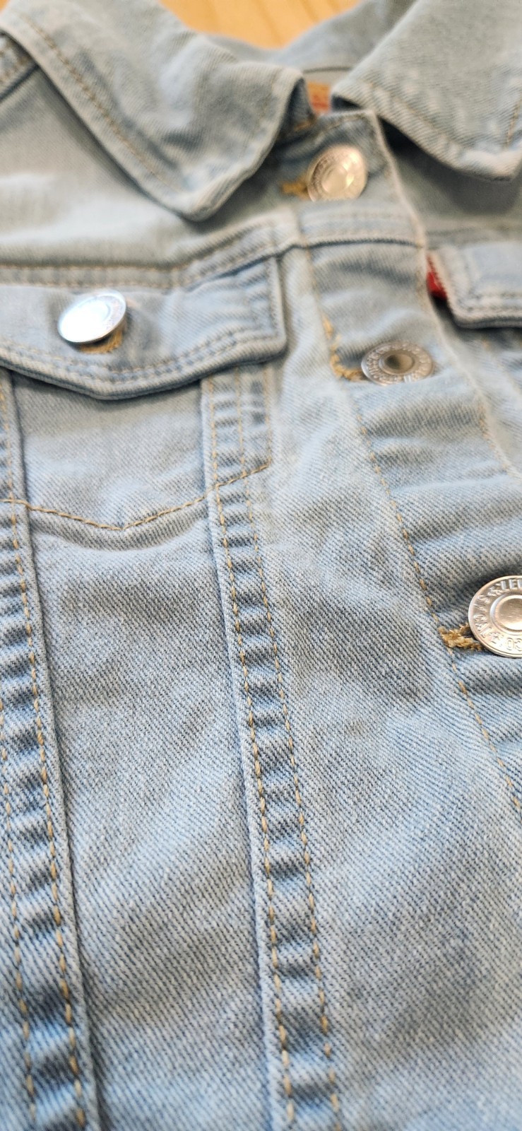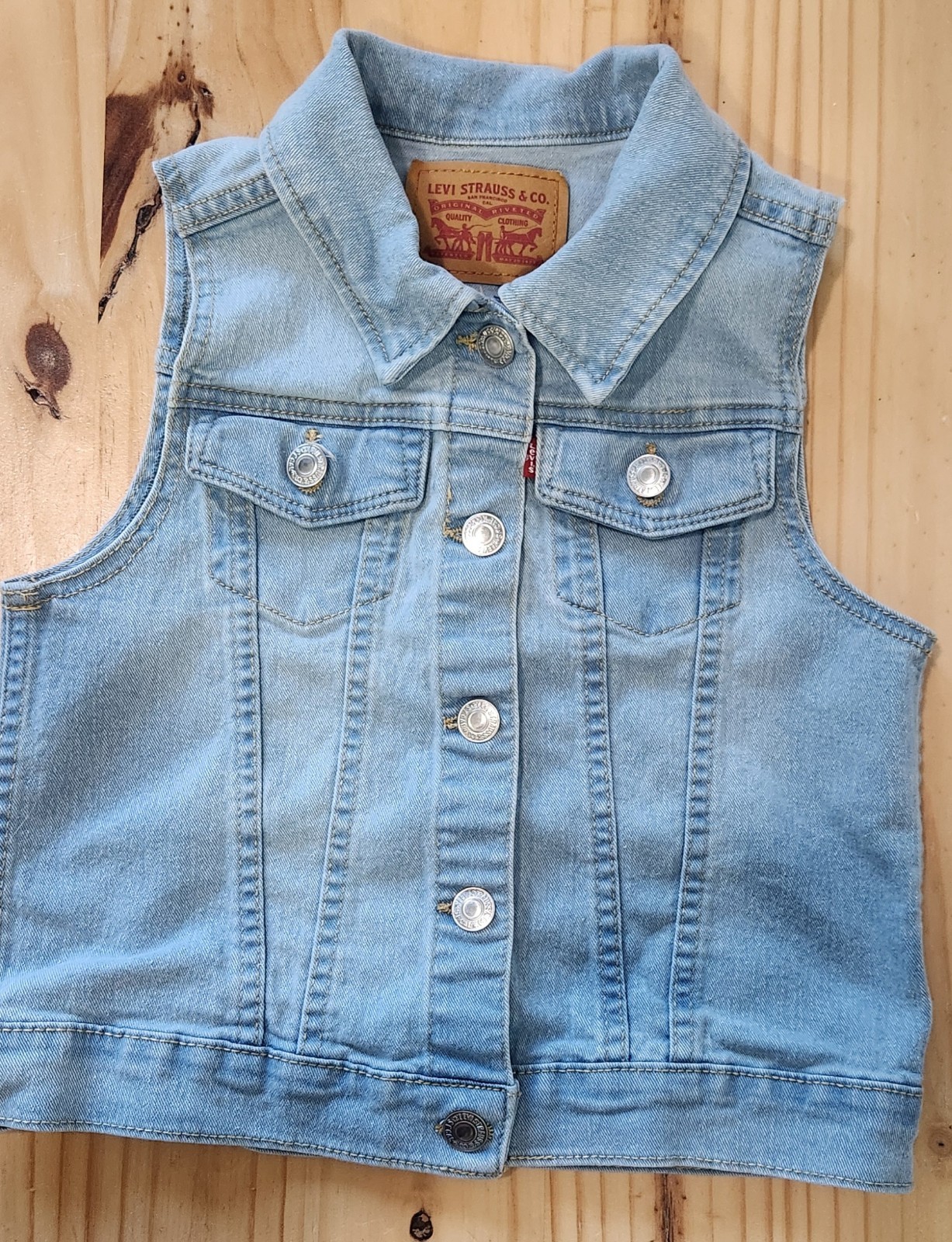 как выглядит Levis Denim Sleeveless Collared Trucker Vest Youth Size Small 7/8 фото