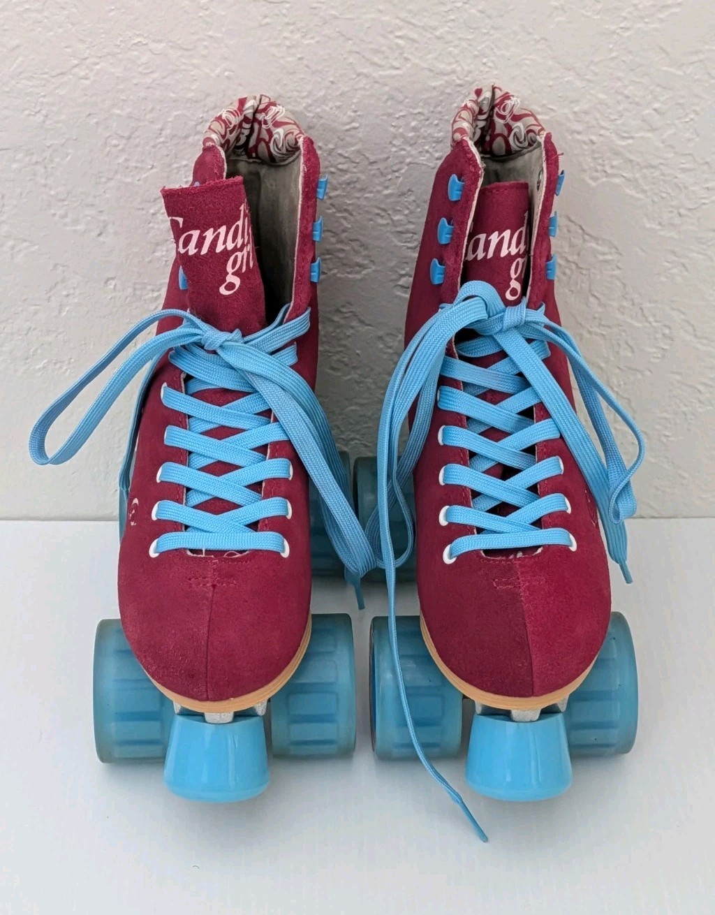 как выглядит Candi Girl Quad Roller Skates Pink Suede Boot Light Blue Laces Womens US 5 Gift фото