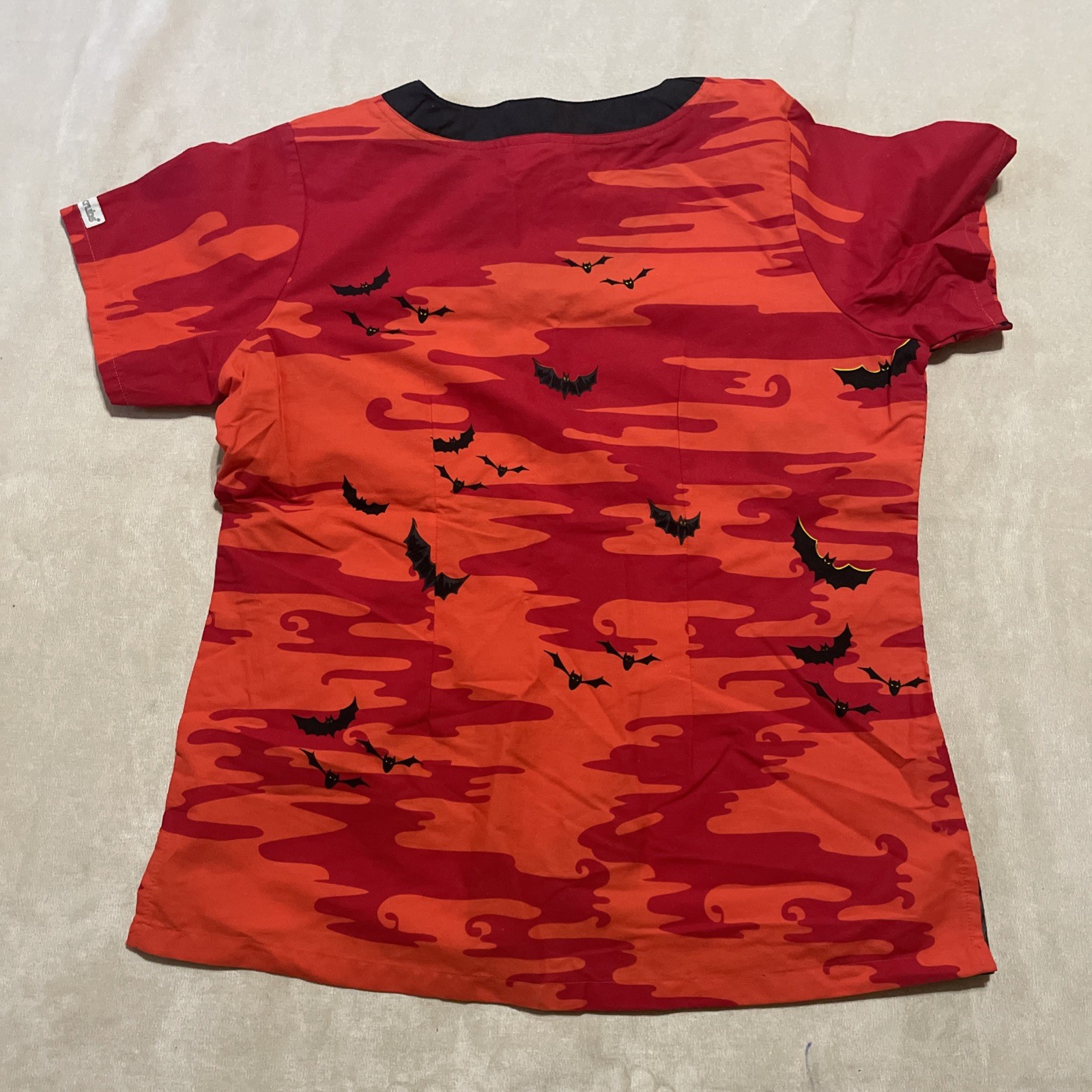 как выглядит UA Scrubs M Halloween Womens Scrub Top Ghost Pumpkins Black Bats Owl фото
