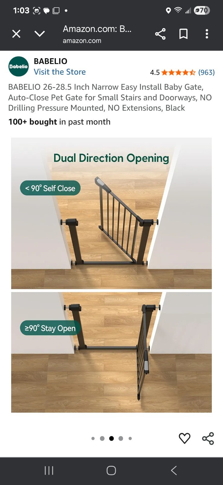 как выглядит BABELIO 26-28.5 Inch Narrow Easy Install Baby Gate, Auto-Close фото