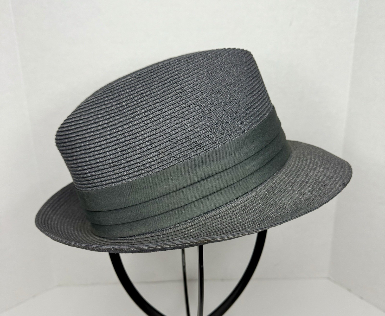 Park Royal Straw Panama Fedora Gray Vintage 1940 s 1950 s Size 6 7/8