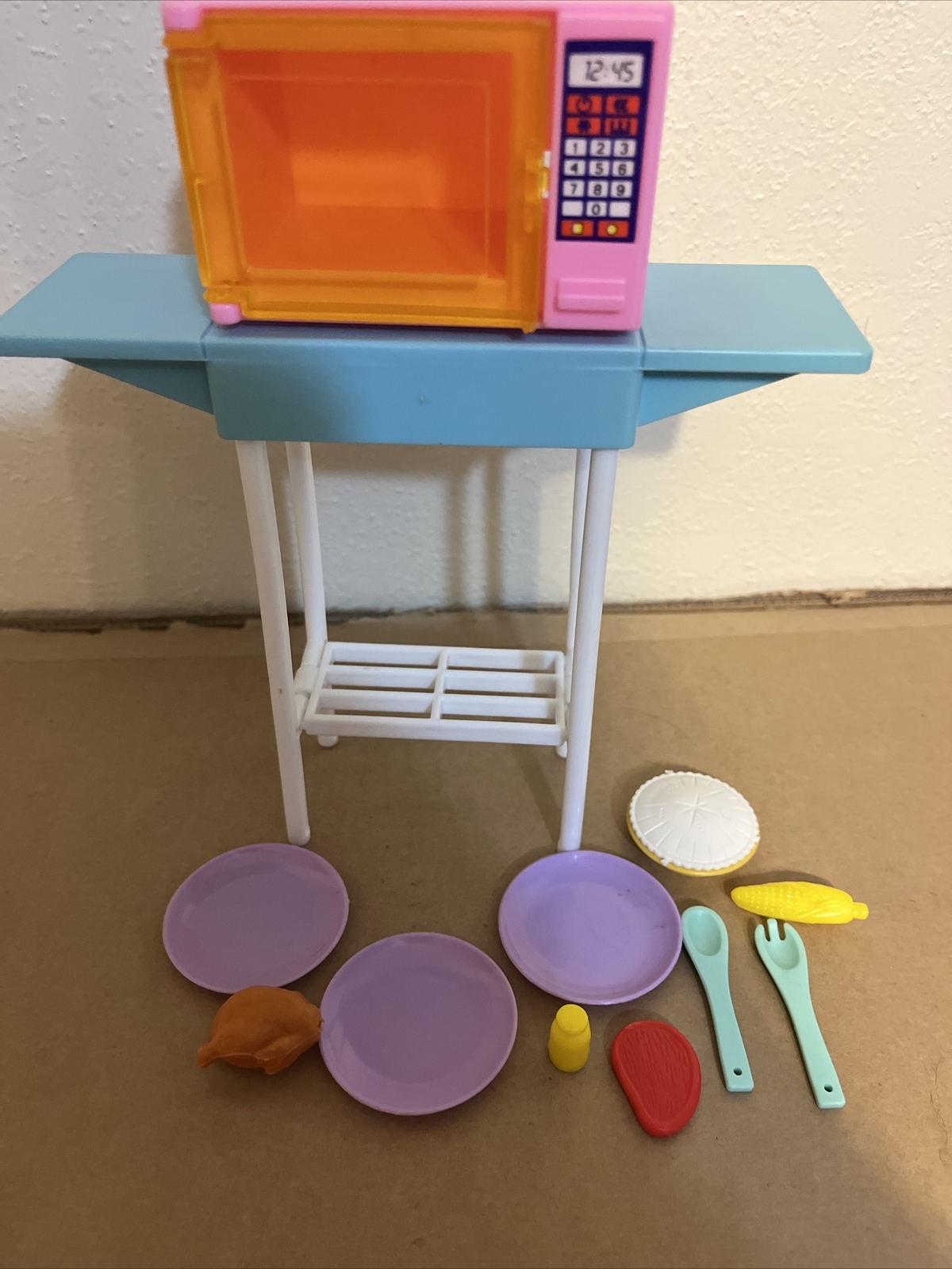 Barbie Kitchen Lot Set 7347 - Microwave Cart And MANY Kitchen Accessories