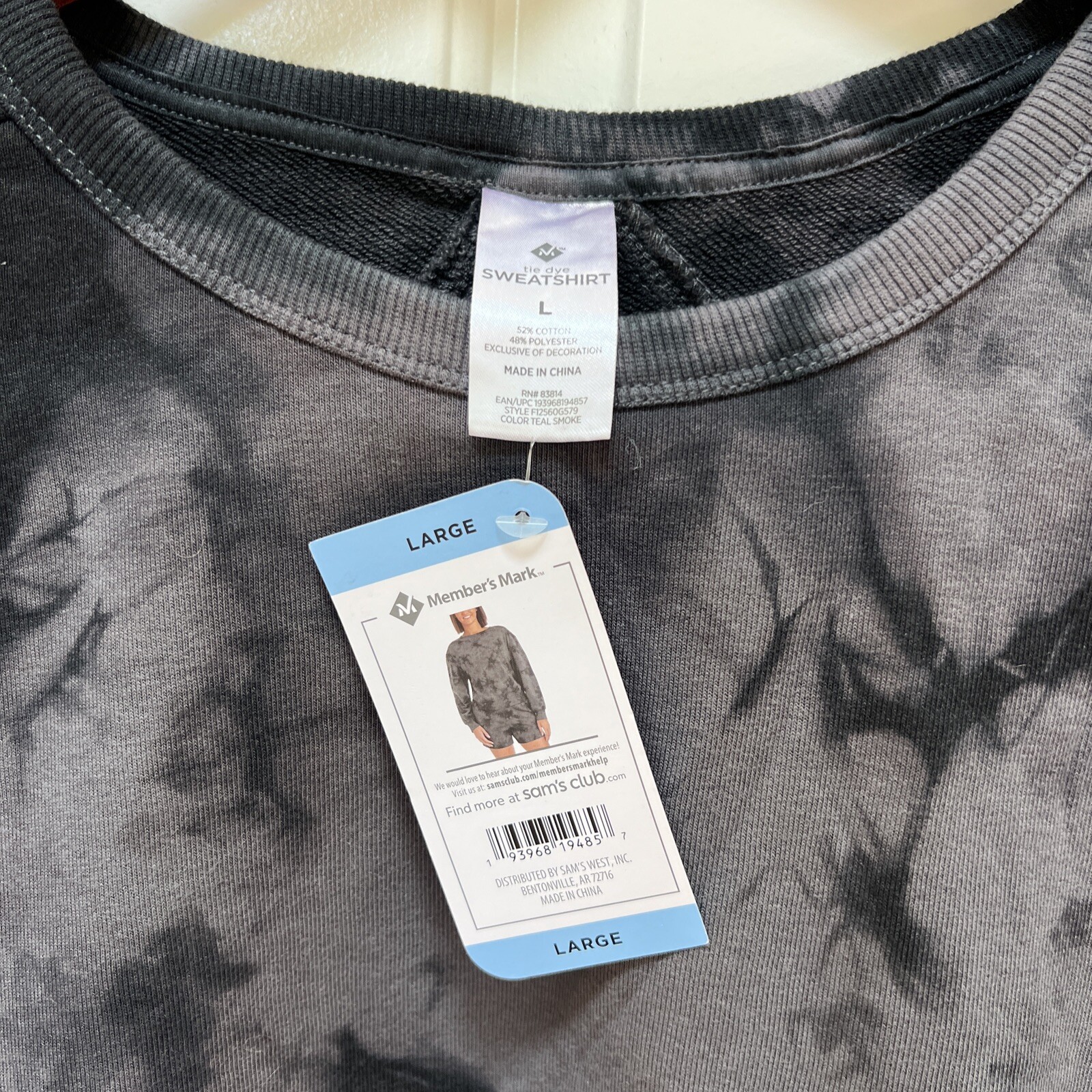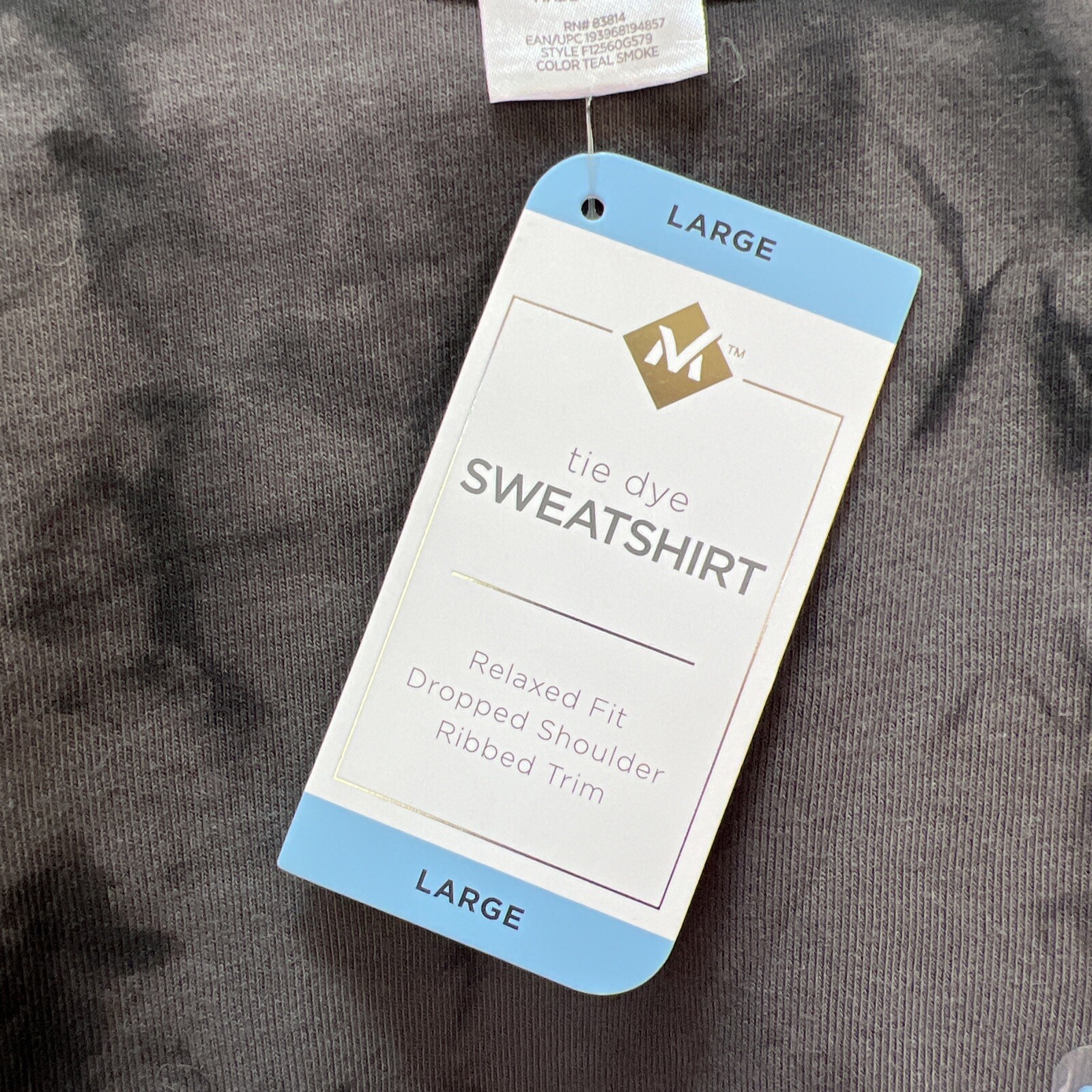 Member's Mark Sweatshirt Women Sz Large Tie Dye Lightweight Smoke Gray Boho NWT