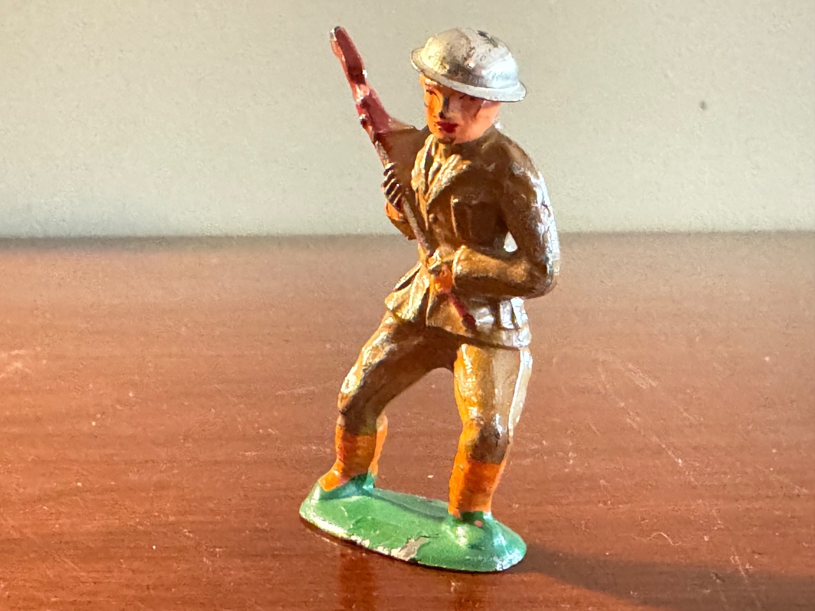 Vintage Barclay B108 766 Soldier Clubbing w Rifle, Tin Helmet Diecast Lead VG